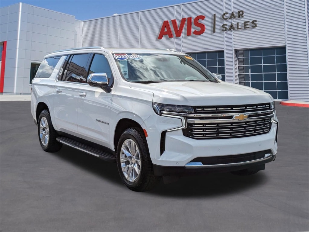 Check out all these great options Preferred Equipment Group 1LZ (Bose 10-Speaker Surround w/CenterPoint, Hands-Free Rear Power Programmable Liftgate, Heated & Ventilated Driver & Front Passenger Seats, Heated 2nd Row Outboard Seats, Lane Change Alert w/Side Blind Zone Alert, Rear Cross Traffic Alert, 1st & 2nd Row Color-Keyed Carpeted Floor Mats, 3rd Row 60/40 Power-Folding Split-Bench, Auto-Dimming Inside Rear-View Mirror, Bright Front & Rear Door Sill Plates, Chrome Door Handles w/Body-Color Strip, Chrome Mirror Caps, Color-Keyed Carpeting Floor Covering, Driver & Front Outboard Passenger Airbags, Dual Exhaust System, Enhanced Driver Information Center, Floor Console, Heated Driver & Front Passenger Seats, Heated Steering Wheel, Infotainment Display, LED Daytime Running Lamps, Memory Settings, Outside Heated Power-Adjustable Mirrors, Power Release 2nd Row Bucket Seats, Power Tilt & Telescopic Steering Column, Remote Start, Safety Alert Seat, SiriusXM Radio w/360L, Universal Home Remote, Wireless Charging, and Wrapped Steering Wheel), Suburban Premier, Avis Certified Certified, 4D Sport Utility, EcoTec3 5.3L V8, 10-Speed Automatic with Overdrive, RWD, Summit White, Jet Black Leather, 20" x 9" Polished Aluminum Wheels, Navigation System, Perforated Leather Seating Surfaces, Rain sensing wipers, Ventilated front seats, 10 Speakers, 3.23 Rear Axle Ratio, 3rd row seats: split-bench, 4-Wheel Disc Brakes, ABS brakes, Adaptive suspension, Air Conditioning, Alloy wheels, AM/FM radio: SiriusXM with 360L, Apple CarPlay/Android Auto, Auto High-beam Headlights, Auto-dimming door mirrors, Auto-dimming Rear-View mirror, Auto-leveling suspension, Automatic temperature control, Brake assist, Bumpers: body-color, Compass, Delay-off headlights, Deleted 3 Years of Remote Access, Driver door bin, Driver vanity mirror, Dual front impact airbags, Dual front side impact airbags, Electronic Stability Control, Emergency communication system: OnStar and Chevrolet connected services capable, Four wheel independent suspension, Front anti-roll bar, Front Bucket Seats, Front Center Armrest, Front dual zone A/C, Front reading lights, Fully automatic headlights, Garage door transmitter, Heated door mirrors, Heated front seats, Heated rear seats, Heated steering wheel, Illuminated entry, Low tire pressure warning, Magnetic Ride Control Suspension, Memory seat, Occupant sensing airbag, Outside temperature display, Overhead airbag, Overhead console, Panic alarm, Passenger door bin, Passenger vanity mirror, Power door mirrors, Power driver seat, Power Liftgate, Power passenger seat, Power steering, Power windows, Premium audio system: Chevrolet Infotainment 3 Premium, Radio: Chevrolet Infotainment 3 Premium System, Rear air conditioning, Rear anti-roll bar, Rear reading lights, Rear window defroster, Rear window wiper, Remote keyless entry, Roof rack: rails only, Security system, Speed control, Speed-sensing steering, Split folding rear seat, Spoiler, Steering wheel memory, Steering wheel mounted audio controls, Tachometer, Telescoping steering wheel, Tilt steering wheel, Traction control, Trip computer, Tu