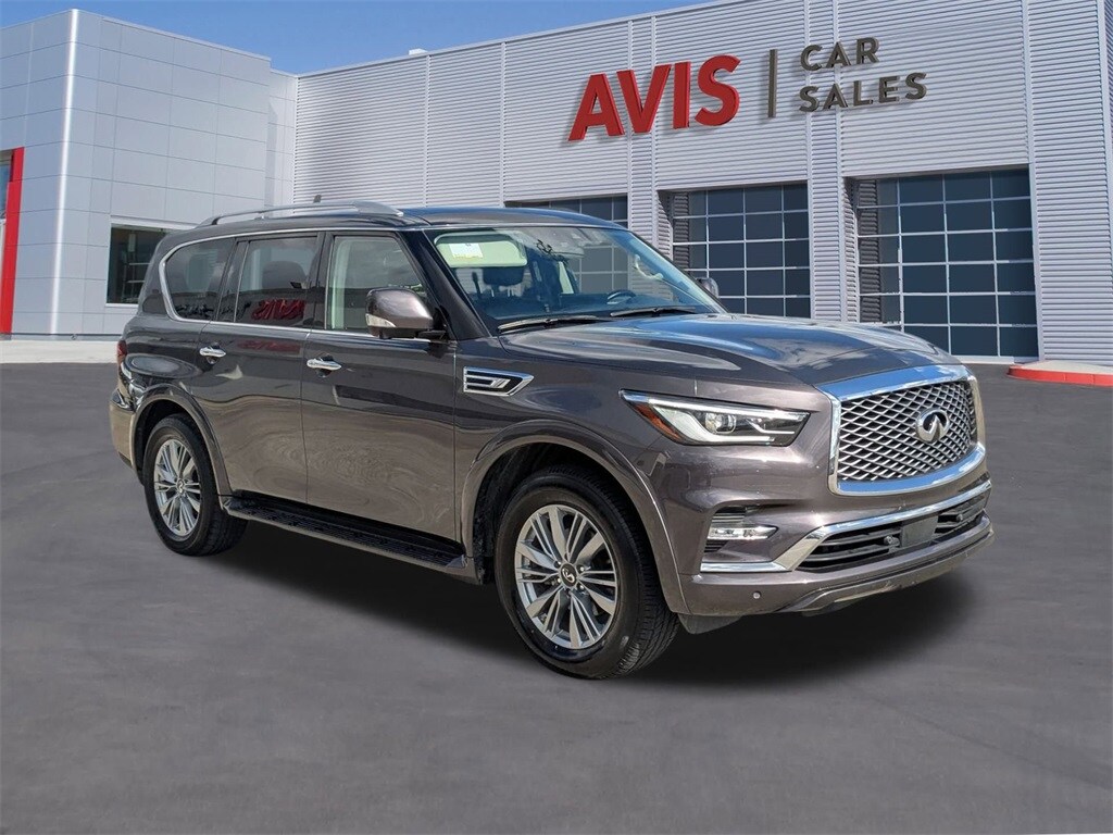 Check out all these great options Avis Car Sales Certified Certified, 20" Aluminum Alloy Wheels, 3rd row seats: bench, Heated Front Bucket Seats, Heated steering wheel, Leather-Appointed Seats, Power Liftgate, Power moonroof, Radio: Bose Premium Audio System w/13 Speakers, Rain sensing wipers, 13 Speakers, 2.937 Axle Ratio, 4-Wheel Disc Brakes, ABS brakes, Air Conditioning, Alloy wheels, AM/FM radio: SiriusXM, Anti-whiplash front head restraints, Apple CarPlay/Android Auto, Auto High-beam Headlights, Auto tilt-away steering wheel, Auto-dimming door mirrors, Auto-dimming Rear-View mirror, Auto-leveling suspension, Automatic temperature control, Brake assist, Bumpers: body-color, Compass, Delay-off headlights, Driver door bin, Driver vanity mirror, Dual front impact airbags, Dual front side impact airbags, Electronic Stability Control, Emergency communication system: INFINITI InTouch, Four wheel independent suspension, Front anti-roll bar, Front Bucket Seats, Front Center Armrest, Front dual zone A/C, Front fog lights, Front reading lights, Fully automatic headlights, Garage door transmitter: HomeLink, Heated door mirrors, Heated front seats, Illuminated entry, Leather Shift Knob, Leather steering wheel, Low tire pressure warning, Memory seat, Navigation system: INFINITI InTouch Navigation, Occupant sensing airbag, Outside temperature display, Overhead airbag, Overhead console, Panic alarm, Passenger door bin, Passenger vanity mirror, Power door mirrors, Power driver seat, Power passenger seat, Power steering, Power windows, Radio data system, Rear air conditioning, Rear anti-roll bar, Rear reading lights, Rear seat center armrest, Rear window defroster, Rear window wiper, Reclining 3rd row seat, Remote keyless entry, Security system, Speed control, Speed-sensing steering, Split folding rear seat, Spoiler, Steering wheel memory, Steering wheel mounted audio controls, Tachometer, Telescoping steering wheel, Tilt steering wheel, Traction control, Trip computer, Turn signal indicator mirrors, Variably intermittent wipers, and Voltmeter.