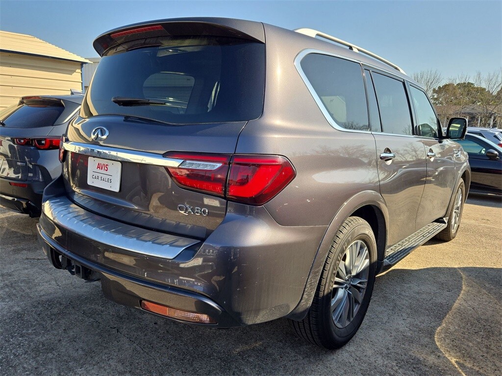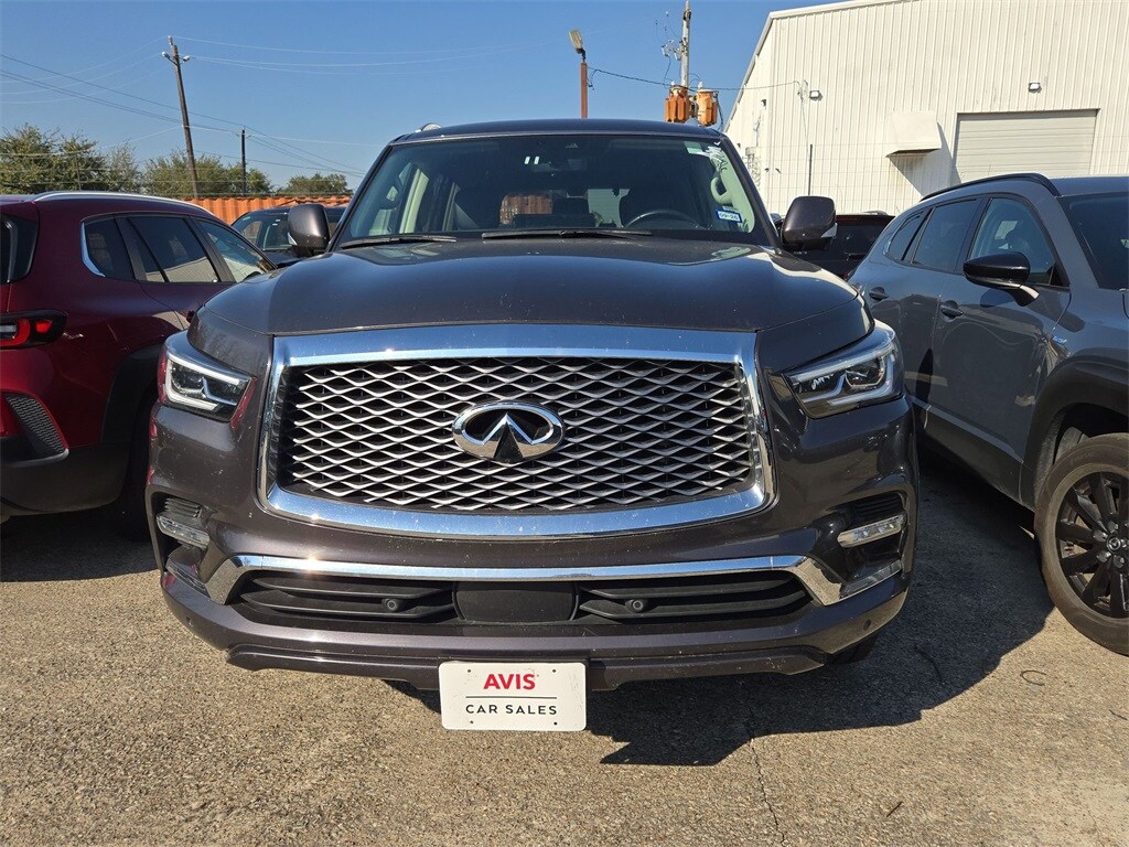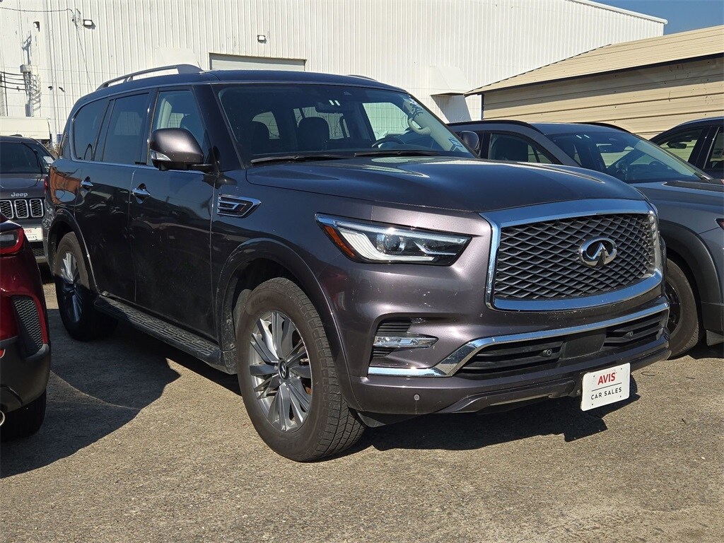 Check out all these great options Avis Car Sales Certified Certified, 20" Aluminum Alloy Wheels, ABS brakes, Active Cruise Control, Alloy wheels, Compass, Electronic Stability Control, Front dual zone A/C, Heated door mirrors, Heated Front Bucket Seats, Heated front seats, Illuminated entry, Low tire pressure warning, Navigation System, Power Liftgate, Power moonroof, Remote keyless entry, Traction control, 13 Speakers, 2.937 Axle Ratio, 3rd row seats: bench, 4-Wheel Disc Brakes, Air Conditioning, AM/FM radio: SiriusXM, Anti-whiplash front head restraints, Apple CarPlay/Android Auto, Auto High-beam Headlights, Auto tilt-away steering wheel, Auto-dimming door mirrors, Auto-dimming Rear-View mirror, Auto-leveling suspension, Automatic temperature control, Brake assist, Bumpers: body-color, Delay-off headlights, Driver door bin, Driver vanity mirror, Dual front impact airbags, Dual front side impact airbags, Emergency communication system: INFINITI InTouch, Four wheel independent suspension, Front anti-roll bar, Front Bucket Seats, Front Center Armrest, Front fog lights, Front reading lights, Fully automatic headlights, Garage door transmitter: HomeLink, Heated steering wheel, Leather Shift Knob, Leather steering wheel, Leather-Appointed Seats, Memory seat, Navigation system: INFINITI InTouch Navigation, Occupant sensing airbag, Outside temperature display, Overhead airbag, Overhead console, Panic alarm, Passenger door bin, Passenger vanity mirror, Power door mirrors, Power driver seat, Power passenger seat, Power steering, Power windows, Radio data system, Radio: Bose Premium Audio System w/13 Speakers, Rain sensing wipers, Rear air conditioning, Rear anti-roll bar, Rear reading lights, Rear seat center armrest, Rear window defroster, Rear window wiper, Reclining 3rd row seat, Security system, Speed control, Speed-sensing steering, Split folding rear seat, Spoiler, Steering wheel memory, Steering wheel mounted audio controls, Tachometer, Telescoping steering wheel, Tilt steering wheel, Trip computer, Turn signal indicator mirrors, Variably intermittent wipers, and Voltmeter.