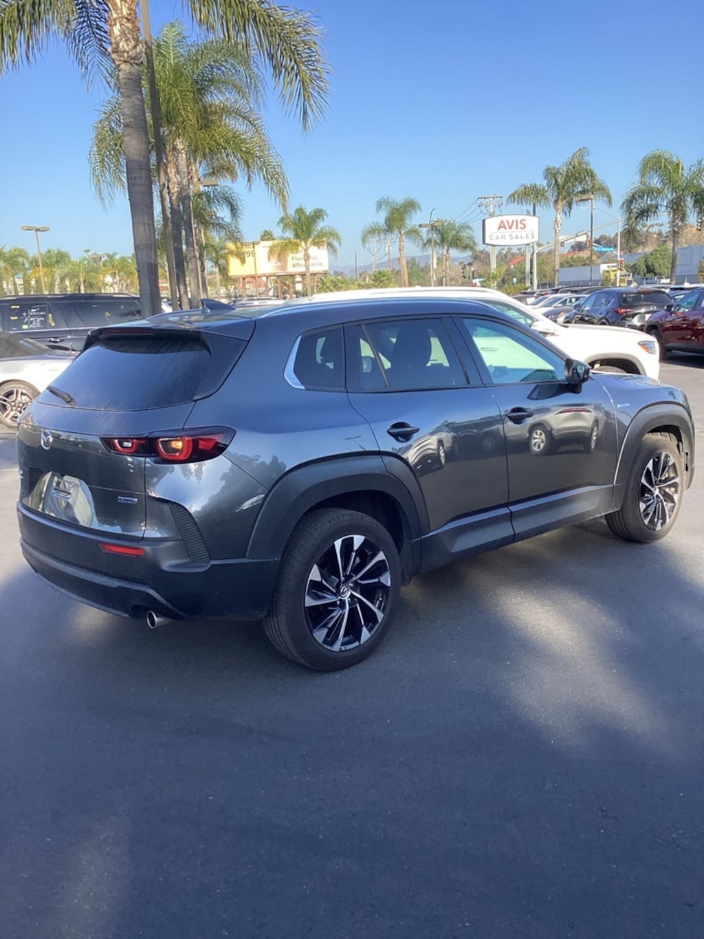Check out all these great option's this Avis vehicle has Power Liftgate, Power moonroof, Remote keyless entry, Split folding rear seat, Wheels: 19" x 7.5J Aluminum Alloy Black Metallic with Machine Cut, 12 Speakers, 4-Wheel Disc Brakes, ABS brakes, Air Conditioning, Alloy wheels, AM/FM radio: SiriusXM, AppLink/Apple CarPlay and Android Auto, Auto High-beam Headlights, Auto-dimming Rear-View mirror, Automatic temperature control, Brake assist, Bumpers: body-color, Delay-off headlights, Driver door bin, Driver vanity mirror, Dual front impact airbags, Dual front side impact airbags, Electronic Stability Control, Emergency communication system: MAZDA CONNECT, Exterior Parking Camera Rear, Front anti-roll bar, Front Bucket Seats, Front Center Armrest, Front dual zone A/C, Front reading lights, Front wheel independent suspension, Fully automatic headlights, Garage door transmitter: HomeLink, Heads-Up Display, Heated and Ventilated Front Seats with 3 Level Adjustment, Heated door mirrors, Heated front seats, Illuminated entry, Knee airbag, Leather Seat Trim, Leather Shift Knob, Leather steering wheel, Low tire pressure warning, Memory seat, Occupant sensing airbag, Outside temperature display, Overhead airbag, Overhead console, Panic alarm, Passenger door bin, Passenger vanity mirror, Power door mirrors, Power driver seat, Power passenger seat, Power steering, Power windows, Radio data system, Radio: AM/FM/HD Bose 12-Speaker Audio Sound System, Rain sensing wipers, Rear seat center armrest, Rear window defroster, Rear window wiper, Speed control, Speed-sensing steering, Spoiler, Steering wheel mounted audio controls, Tachometer, Telescoping steering wheel, Tilt steering wheel, Traction control, Trip computer, Turn signal indicator mirrors, Variably intermittent wipers, and Ventilated front seats.