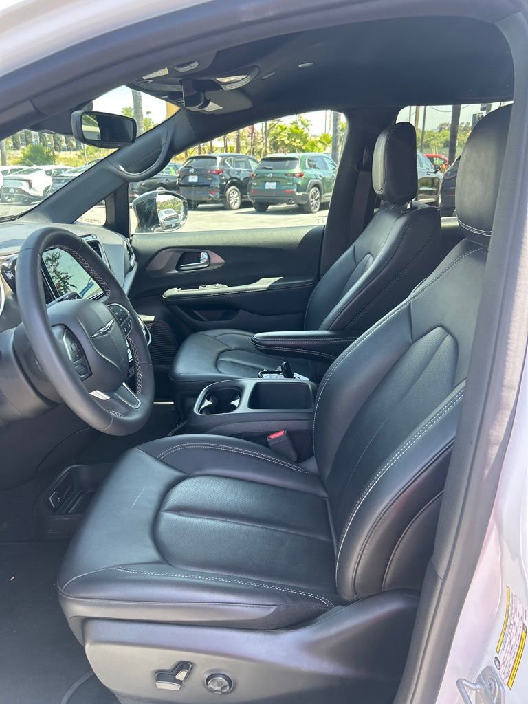 Stepping inside, you'll be greeted by a spacious and well-appointed cabin that seamlessly blends comfort and convenience. Enjoy the convenience of dual-zone automatic climate control, a heated steering wheel, and a stunning 10.1" touchscreen display with the latest Uconnect 5 infotainment system. The Pacifica Select also boasts a suite of advanced safety features, including Blind Spot Monitoring, Rear Cross-Traffic Alert, and Adaptive Cruise Control, ensuring you and your loved ones travel with the utmost confidence.