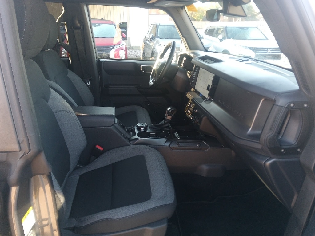 Check out all these great options Equipment Group 222A Mid Package (2-Door Intelligent Access w/Lock/Unlock, Dual Smart Charging USB Ports, Front Row Heated Seats, and Power Outlet - Back Side of Center Floor Console), Carbonized Gray Molded-In-Color Hard Top, Heated door mirrors, Power door mirrors, Rear-Window Defroster & Washer, 4-Wheel Disc Brakes, 4.46 Axle Ratio, 7 Speakers, ABS brakes, Air Conditioning, Alloy wheels, AM/FM radio: SiriusXM with 360L, AM/FM Stereo, Auto High-beam Headlights, Brake assist, Cloth Bucket Seats, Compass, Delay-off headlights, Driver door bin, Driver vanity mirror, Dual front impact airbags, Dual front side impact airbags, Electronic Stability Control, Emergency communication system: 911 Assist, Exterior Parking Camera Rear, Front anti-roll bar, Front Bucket Seats, Front Center Armrest, Front reading lights, Front wheel independent suspension, Fully automatic headlights, Illuminated entry, Integrated roll-over protection, Leather Shift Knob, Low tire pressure warning, Occupant sensing airbag, Outside temperature display, Overhead airbag, Overhead console, Panic alarm, Passenger door bin, Passenger vanity mirror, Power steering, Power windows, Radio data system, Remote keyless entry, Security system, SiriusXM w/360L, Speed control, Split folding rear seat, Steering wheel mounted audio controls, SYNC 4, Tachometer, Telescoping steering wheel, Tilt steering wheel, Traction control, Trip computer, Variably intermittent wipers, and Wheels: 17" Carbonized Gray-Painted Aluminum.