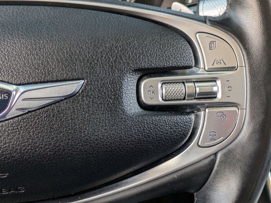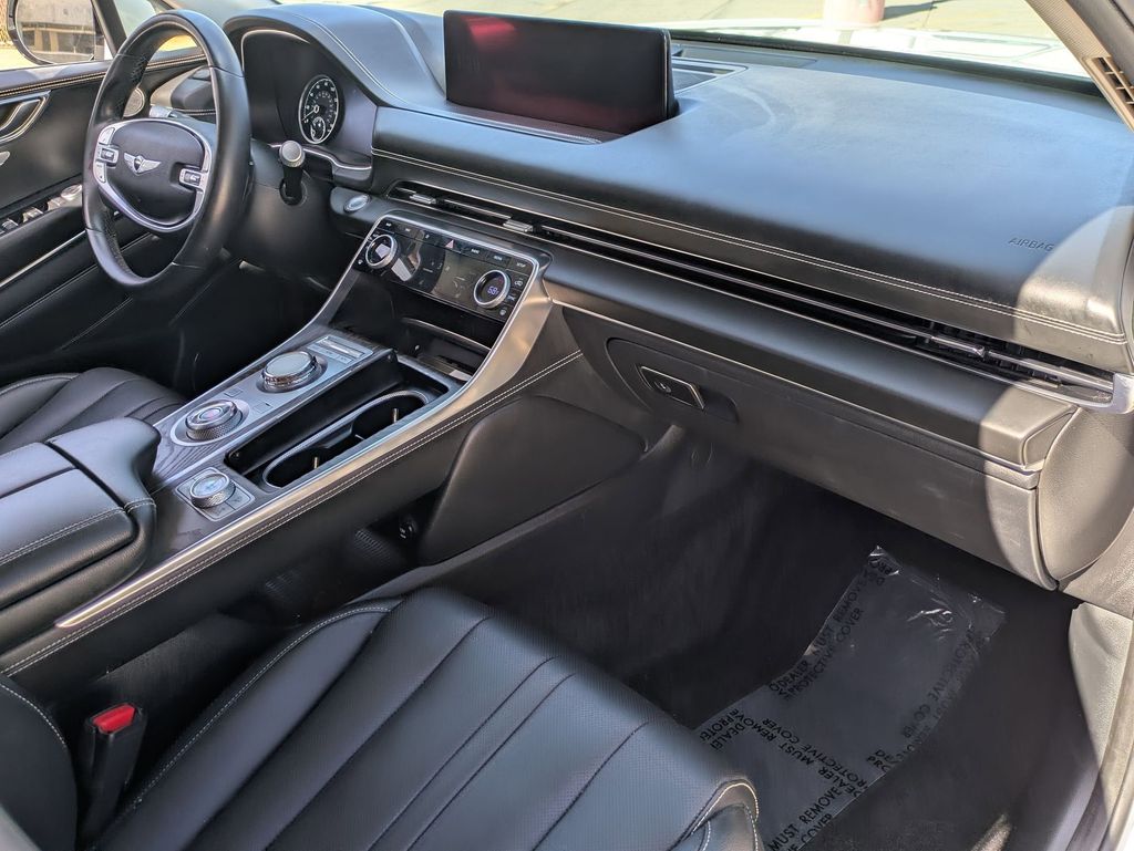 Check out all these great options Avis Car Sales Certified Certified, Brake assist, Heated front seats, Power Liftgate, Wheels: 19" x 8.5J Medium Metallic Gray Alloy, 12 Speakers, 4-Wheel Disc Brakes, 4.363 Axle Ratio, ABS brakes, Air Conditioning, Alloy wheels, AM/FM radio: SiriusXM, Android Auto & Apple CarPlay, Anti-whiplash front head restraints, Auto High-beam Headlights, Auto tilt-away steering wheel, Auto-dimming door mirrors, Auto-dimming Rear-View mirror, Auto-leveling suspension, Automatic temperature control, Bumpers: body-color, Compass, Delay-off headlights, Driver door bin, Driver vanity mirror, Dual front impact airbags, Dual front side impact airbags, Electronic Stability Control, Emergency communication system: Genesis Connected Services, Exterior Parking Camera Rear, Four wheel independent suspension, Front anti-roll bar, Front Bucket Seats, Front Center Armrest, Front dual zone A/C, Front reading lights, Fully automatic headlights, Garage door transmitter: HomeLink, Genuine wood console insert, Genuine wood dashboard insert, Genuine wood door panel insert, Heated door mirrors, Heated Front Bucket Seats, Heated steering wheel, Illuminated entry, Knee airbag, Leather steering wheel, Leatherette Seating Surfaces, Low tire pressure warning, Memory seat, Navigation System, Occupant sensing airbag, Outside temperature display, Overhead airbag, Overhead console, Panic alarm, Passenger door bin, Passenger vanity mirror, Power door mirrors, Power driver seat, Power passenger seat, Power steering, Power windows, Radio data system, Radio:14.5" Navigation System w/AM/FM/HD Radio, Rain sensing wipers, Rear air conditioning, Rear anti-roll bar, Rear reading lights, Rear seat center armrest, Rear side impact airbag, Rear window defroster, Rear window wiper, Remote keyless entry, Security system, Speed control, Speed-sensing steering, Speed-Sensitive Wipers, Split folding rear seat, Spoiler, Steering wheel memory, Steering wheel mounted audio controls, Tachometer, Telescoping steering wheel, Tilt steering wheel, Traction control, Trip computer, Turn signal indicator mirrors, and Variably intermittent wipers.