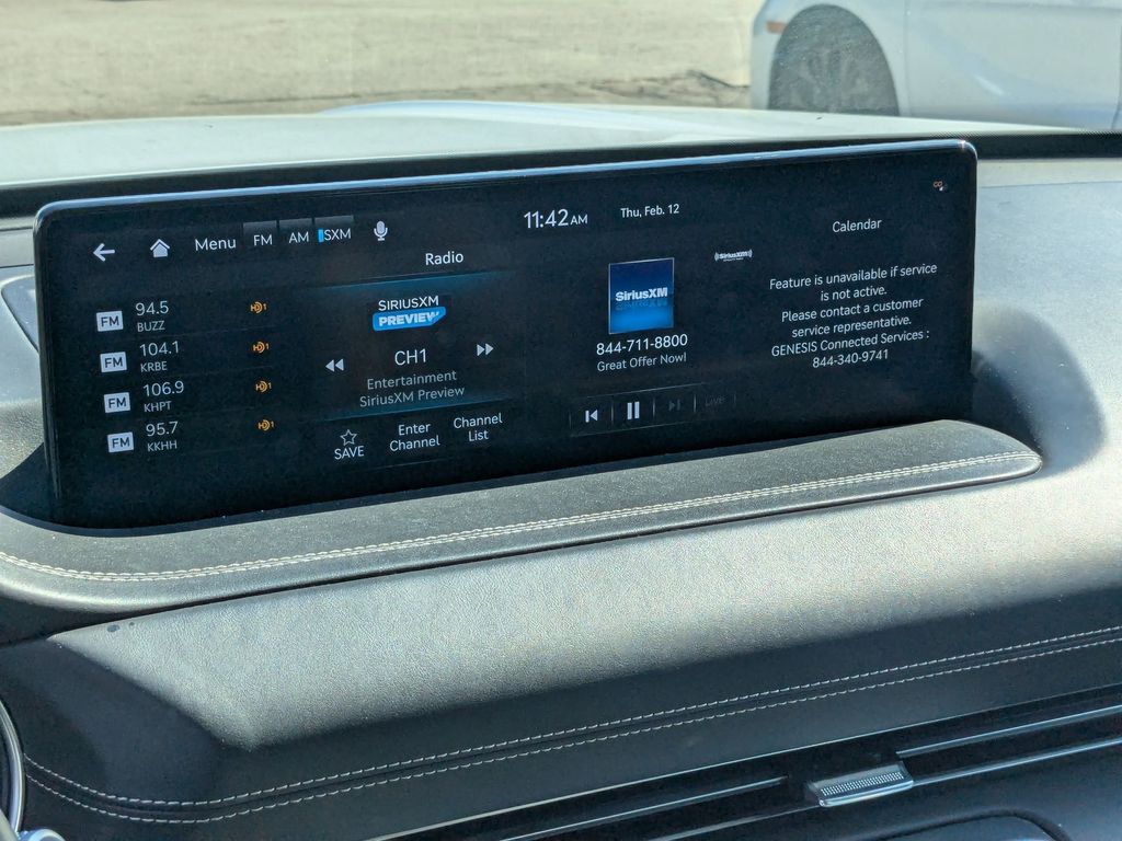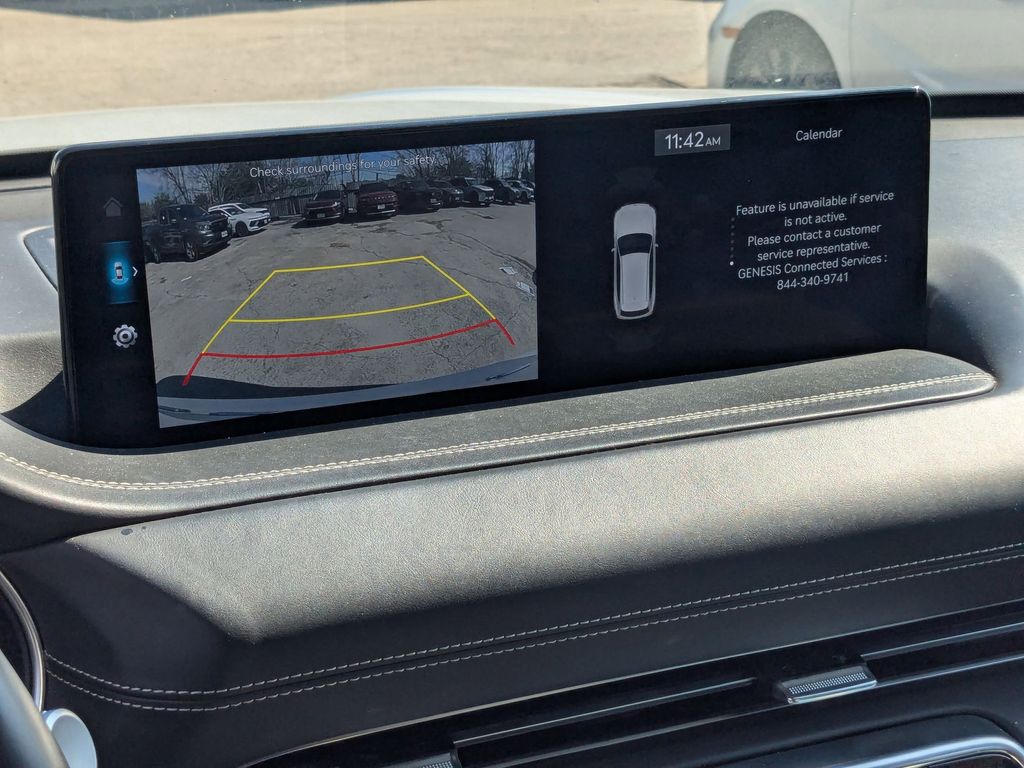Check out all these great options Avis Car Sales Certified Certified, Heated front seats, Power Liftgate, Rain sensing wipers, Wheels: 19" x 8.5J Medium Metallic Gray Alloy, 12 Speakers, 4-Wheel Disc Brakes, 4.363 Axle Ratio, ABS brakes, Air Conditioning, Alloy wheels, AM/FM radio: SiriusXM, Android Auto & Apple CarPlay, Anti-whiplash front head restraints, Auto High-beam Headlights, Auto tilt-away steering wheel, Auto-dimming door mirrors, Auto-dimming Rear-View mirror, Auto-leveling suspension, Automatic temperature control, Brake assist, Bumpers: body-color, Compass, Delay-off headlights, Driver door bin, Driver vanity mirror, Dual front impact airbags, Dual front side impact airbags, Electronic Stability Control, Emergency communication system: Genesis Connected Services, Exterior Parking Camera Rear, Four wheel independent suspension, Front anti-roll bar, Front Bucket Seats, Front Center Armrest, Front dual zone A/C, Front reading lights, Fully automatic headlights, Garage door transmitter: HomeLink, Genuine wood console insert, Genuine wood dashboard insert, Genuine wood door panel insert, Heated door mirrors, Heated Front Bucket Seats, Heated steering wheel, Illuminated entry, Knee airbag, Leather steering wheel, Leatherette Seating Surfaces, Low tire pressure warning, Memory seat, Navigation System, Occupant sensing airbag, Outside temperature display, Overhead airbag, Overhead console, Panic alarm, Passenger door bin, Passenger vanity mirror, Power door mirrors, Power driver seat, Power passenger seat, Power steering, Power windows, Radio data system, Radio:14.5" Navigation System w/AM/FM/HD Radio, Rear air conditioning, Rear anti-roll bar, Rear reading lights, Rear seat center armrest, Rear side impact airbag, Rear window defroster, Rear window wiper, Remote keyless entry, Security system, Speed control, Speed-sensing steering, Speed-Sensitive Wipers, Split folding rear seat, Spoiler, Steering wheel memory, Steering wheel mounted audio controls, Tachometer, Telescoping steering wheel, Tilt steering wheel, Traction control, Trip computer, Turn signal indicator mirrors, and Variably intermittent wipers.