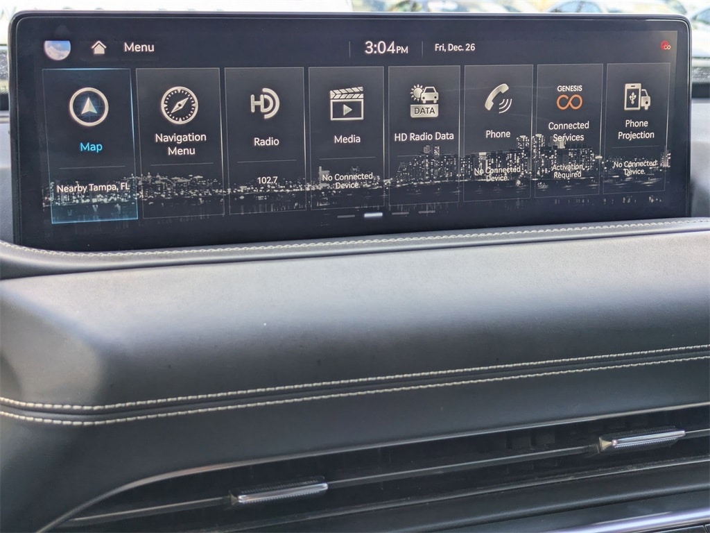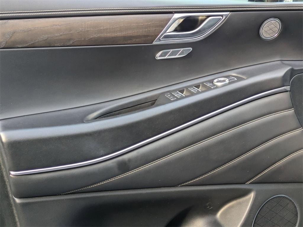 Check out all these great options Avis Certified Certified, Android Auto & Apple CarPlay, Exterior Parking Camera Rear, Heated door mirrors, Heated Front Bucket Seats, Heated steering wheel, Leatherette Seating Surfaces, Memory seat, Power driver seat, Power Liftgate, Rain sensing wipers, Remote keyless entry, Steering wheel memory, Steering wheel mounted audio controls, Wheels: 19" x 8.5J Medium Metallic Gray Alloy, 12 Speakers, 4-Wheel Disc Brakes, 4.363 Axle Ratio, ABS brakes, Air Conditioning, Alloy wheels, AM/FM radio: SiriusXM, Anti-whiplash front head restraints, Auto High-beam Headlights, Auto tilt-away steering wheel, Auto-dimming door mirrors, Auto-dimming Rear-View mirror, Auto-leveling suspension, Automatic temperature control, Brake assist, Bumpers: body-color, Compass, Delay-off headlights, Driver door bin, Driver vanity mirror, Dual front impact airbags, Dual front side impact airbags, Electronic Stability Control, Emergency communication system: Genesis Connected Services, Four wheel independent suspension, Front anti-roll bar, Front Bucket Seats, Front Center Armrest, Front dual zone A/C, Front reading lights, Fully automatic headlights, Garage door transmitter: HomeLink, Genuine wood console insert, Genuine wood dashboard insert, Genuine wood door panel insert, Heated front seats, Illuminated entry, Knee airbag, Leather steering wheel, Low tire pressure warning, Navigation System, Occupant sensing airbag, Outside temperature display, Overhead airbag, Overhead console, Panic alarm, Passenger door bin, Passenger vanity mirror, Power door mirrors, Power passenger seat, Power steering, Power windows, Radio data system, Radio:14.5" Navigation System w/AM/FM/HD Radio, Rear air conditioning, Rear anti-roll bar, Rear reading lights, Rear seat center armrest, Rear side impact airbag, Rear window defroster, Rear window wiper, Security system, Speed control, Speed-sensing steering, Speed-Sensitive Wipers, Split folding rear seat, Spoiler, Tachometer, Telescoping steering wheel, Tilt steering wheel, Traction control, Trip computer, Turn signal indicator mirrors, and Variably intermittent wipers.