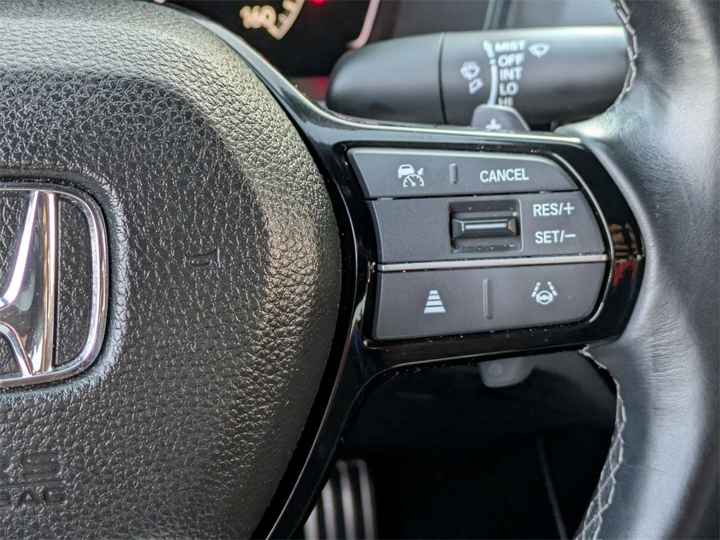 Check out all these great options 4-Wheel Disc Brakes, 8 Speakers, ABS brakes, Adaptive Cruise Control: Adaptive Cruise Control (ACC) with Low-Speed Follow, Air Conditioning, Alloy wheels, AM/FM radio, Apple CarPlay/Android Auto, Auto High-beam Headlights, Automatic temperature control, Blind Spot Information (BSI) System warning, Brake assist, Bumpers: body-color, Cloth/Leatherette Seating Surfaces, Delay-off headlights, Driver door bin, Driver vanity mirror, Dual front impact airbags, Dual front side impact airbags, Electronic Stability Control, Emergency communication system: HondaLink, Exterior Parking Camera Rear, Four wheel independent suspension, Front anti-roll bar, Front Bucket Seats, Front Center Armrest, Front reading lights, Fully automatic headlights, Heated door mirrors, Illuminated entry, Knee airbag, Leather Shift Knob, Leather steering wheel, Low tire pressure warning, Occupant sensing airbag, Outside temperature display, Overhead airbag, Panic alarm, Passenger door bin, Passenger vanity mirror, Power door mirrors, Power steering, Power windows, Radio data system, Radio: 180-Watt Audio System, Rear anti-roll bar, Rear seat center armrest, Rear side impact airbag, Rear window defroster, Remote keyless entry, Security system, Speed control, Speed-sensing steering, Split folding rear seat, Steering wheel mounted audio controls, Tachometer, Telescoping steering wheel, Tilt steering wheel, Traction control, Trip computer, and Wheels: 18" Gloss Black Alloy.