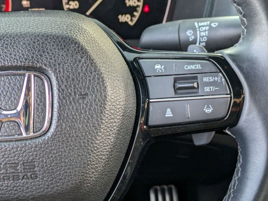 Check out all these great options Avis Car Sales Certified Certified, Black w/Cloth Seating Surfaces, 4-Wheel Disc Brakes, 8 Speakers, ABS brakes, Adaptive Cruise Control: Adaptive Cruise Control (ACC) with Low-Speed Follow, Air Conditioning, Alloy wheels, AM/FM radio, Apple CarPlay/Android Auto, Auto High-beam Headlights, Automatic temperature control, Blind Spot Information (BSI) System warning, Brake assist, Bumpers: body-color, Cloth/Leatherette Seating Surfaces, Delay-off headlights, Driver door bin, Driver vanity mirror, Dual front impact airbags, Dual front side impact airbags, Electronic Stability Control, Emergency communication system: HondaLink, Exterior Parking Camera Rear, Four wheel independent suspension, Front anti-roll bar, Front Bucket Seats, Front Center Armrest, Front reading lights, Fully automatic headlights, Heated door mirrors, Illuminated entry, Knee airbag, Leather Shift Knob, Leather steering wheel, Low tire pressure warning, Occupant sensing airbag, Outside temperature display, Overhead airbag, Panic alarm, Passenger door bin, Passenger vanity mirror, Power door mirrors, Power steering, Power windows, Radio data system, Radio: 180-Watt Audio System, Rear anti-roll bar, Rear seat center armrest, Rear side impact airbag, Rear window defroster, Remote keyless entry, Security system, Speed control, Speed-sensing steering, Split folding rear seat, Steering wheel mounted audio controls, Tachometer, Telescoping steering wheel, Tilt steering wheel, Traction control, Trip computer, and Wheels: 18" Gloss Black Alloy.