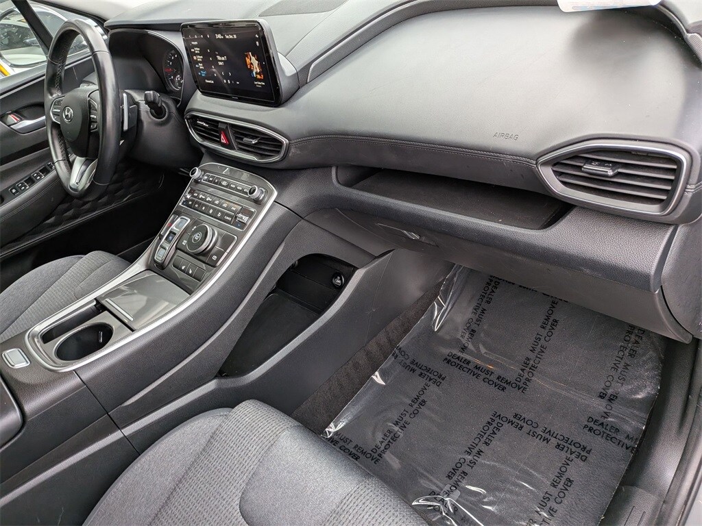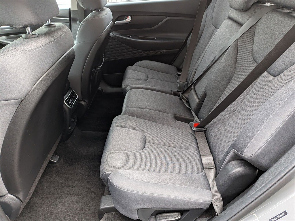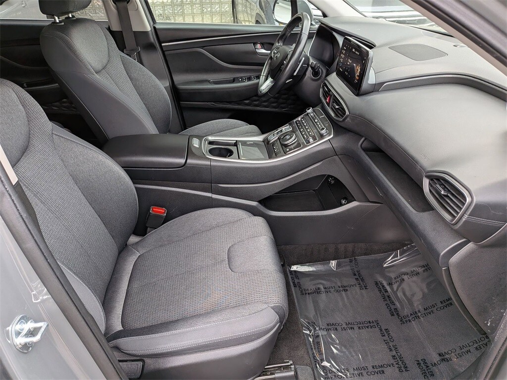 Check out all these great options Santa Fe SEL, Avis Certified Certified, 4D Sport Utility, 2.5L I4, 8-Speed Automatic with SHIFTRONIC, FWD, Gray, Gray Cloth, Exterior Parking Camera Rear, Heated Front Bucket Seats, Navigation System, Power Liftgate, Remote keyless entry, 18" x 7.5J Alloy Wheels, 4-Wheel Disc Brakes, 6 Speakers, ABS brakes, Air Conditioning, Alloy wheels, AM/FM radio: SiriusXM, Apple CarPlay & Android Auto, Auto High-beam Headlights, Automatic temperature control, Axle Ratio: 3.798, Brake assist, Bumpers: body-color, Delay-off headlights, Driver door bin, Driver vanity mirror, Dual front impact airbags, Dual front side impact airbags, Electronic Stability Control, Emergency communication system, Four wheel independent suspension, Front anti-roll bar, Front Bucket Seats, Front Center Armrest, Front dual zone A/C, Front reading lights, Fully automatic headlights, Heated door mirrors, Heated front seats, Illuminated entry, Leather steering wheel, Low tire pressure warning, Occupant sensing airbag, Outside temperature display, Overhead airbag, Overhead console, Panic alarm, Passenger door bin, Passenger vanity mirror, Power door mirrors, Power driver seat, Power steering, Power windows, Radio: AM/FM Display Audio, Rear anti-roll bar, Rear seat center armrest, Rear window defroster, Rear window wiper, Security system, Speed control, Speed-sensing steering, Split folding rear seat, Spoiler, Stain-Resistant Cloth Seat Trim, Steering wheel mounted audio controls, Tachometer, Telescoping steering wheel, Tilt steering wheel, Traction control, Trip computer, Turn signal indicator mirrors, and Variably intermittent wipers.