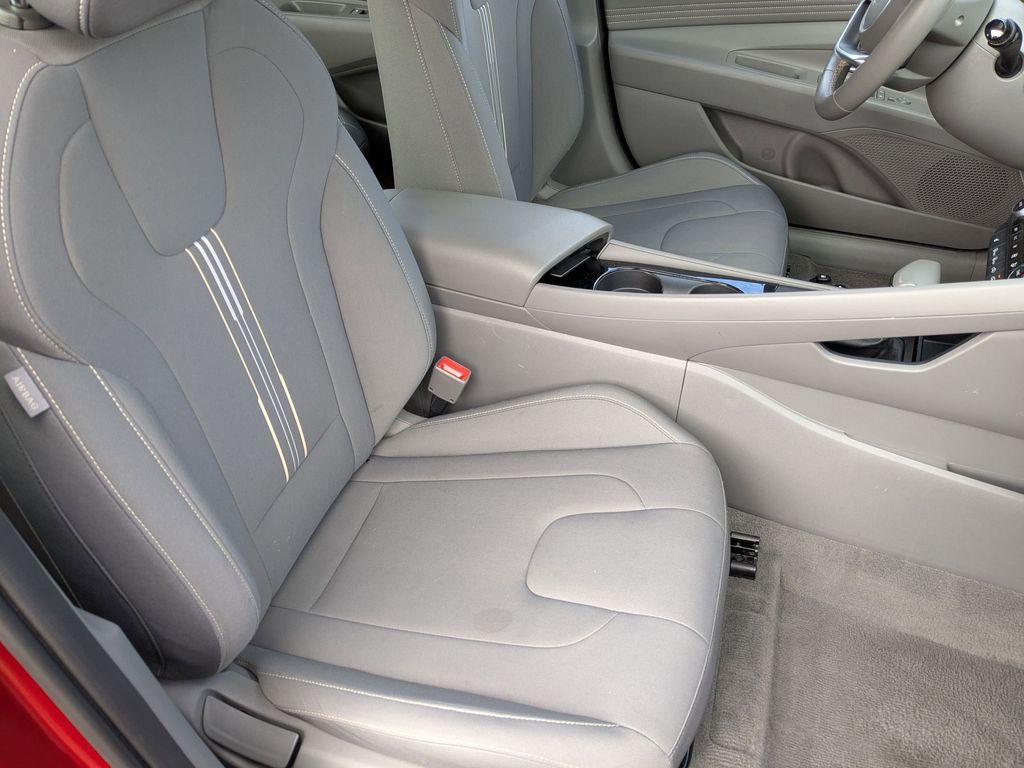 Step inside, and you'll be greeted by a spacious, well-appointed cabin that showcases Hyundai's commitment to quality. The premium cloth seats, leather-wrapped steering wheel, and available power moonroof create an inviting and refined environment. Advanced technology features, including the intuitive infotainment system with Apple CarPlay and Android Auto integration, keep you connected and entertained on every journey.