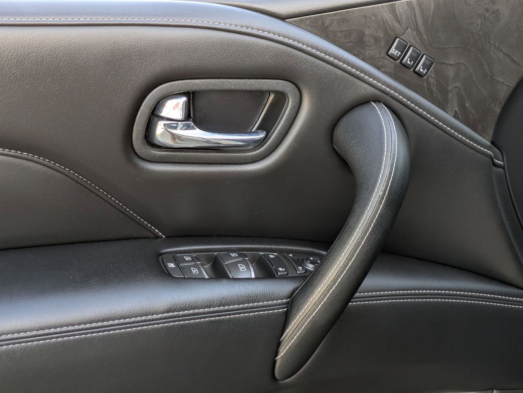 Check out all these great options Avis Car Sales Certified Certified, 20" Aluminum Alloy Wheels, 3rd row seats: bench, Power Liftgate, Power moonroof, Reclining 3rd row seat, 13 Speakers, 2.937 Axle Ratio, 4-Wheel Disc Brakes, ABS brakes, Air Conditioning, Alloy wheels, AM/FM radio: SiriusXM, Anti-whiplash front head restraints, Apple CarPlay/Android Auto, Auto High-beam Headlights, Auto tilt-away steering wheel, Auto-dimming door mirrors, Auto-dimming Rear-View mirror, Auto-leveling suspension, Automatic temperature control, Brake assist, Bumpers: body-color, Compass, Delay-off headlights, Driver door bin, Driver vanity mirror, Dual front impact airbags, Dual front side impact airbags, Electronic Stability Control, Emergency communication system: INFINITI InTouch, Four wheel independent suspension, Front anti-roll bar, Front Bucket Seats, Front Center Armrest, Front dual zone A/C, Front fog lights, Front reading lights, Fully automatic headlights, Garage door transmitter: HomeLink, Heated door mirrors, Heated Front Bucket Seats, Heated front seats, Heated steering wheel, Illuminated entry, Leather Shift Knob, Leather steering wheel, Leather-Appointed Seats, Low tire pressure warning, Memory seat, Navigation system: INFINITI InTouch Navigation, Occupant sensing airbag, Outside temperature display, Overhead airbag, Overhead console, Panic alarm, Passenger door bin, Passenger vanity mirror, Power door mirrors, Power driver seat, Power passenger seat, Power steering, Power windows, Radio data system, Radio: Bose Premium Audio System w/13 Speakers, Rain sensing wipers, Rear air conditioning, Rear anti-roll bar, Rear reading lights, Rear seat center armrest, Rear window defroster, Rear window wiper, Remote keyless entry, Security system, Speed control, Speed-sensing steering, Split folding rear seat, Spoiler, Steering wheel memory, Steering wheel mounted audio controls, Tachometer, Telescoping steering wheel, Tilt steering wheel, Traction control, Trip computer, Turn signal indicator mirrors, Variably intermittent wipers, and Voltmeter.