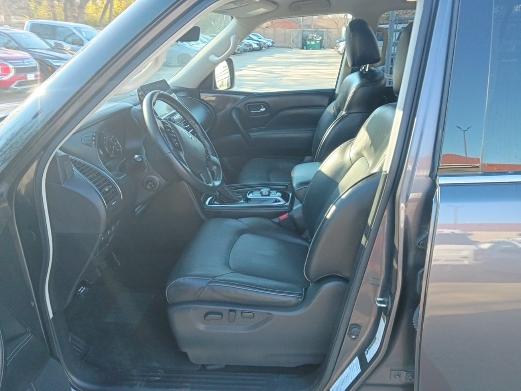 Check out all these great options Avis Certified Certified, 13 Speakers, 2.937 Axle Ratio, 20" Aluminum Alloy Wheels, 3rd row seats: bench, 4-Wheel Disc Brakes, ABS brakes, Air Conditioning, Alloy wheels, AM/FM radio: SiriusXM, Anti-whiplash front head restraints, Apple CarPlay/Android Auto, Auto High-beam Headlights, Auto tilt-away steering wheel, Auto-dimming door mirrors, Auto-dimming Rear-View mirror, Auto-leveling suspension, Automatic temperature control, Brake assist, Bumpers: body-color, Compass, Delay-off headlights, Driver door bin, Driver vanity mirror, Dual front impact airbags, Dual front side impact airbags, Electronic Stability Control, Emergency communication system: INFINITI InTouch, Four wheel independent suspension, Front anti-roll bar, Front Bucket Seats, Front Center Armrest, Front dual zone A/C, Front fog lights, Front reading lights, Fully automatic headlights, Garage door transmitter: HomeLink, Heated door mirrors, Heated Front Bucket Seats, Heated front seats, Heated steering wheel, Illuminated entry, Leather Shift Knob, Leather steering wheel, Leather-Appointed Seats, Low tire pressure warning, Memory seat, Navigation system: INFINITI InTouch Navigation, Occupant sensing airbag, Outside temperature display, Overhead airbag, Overhead console, Panic alarm, Passenger door bin, Passenger vanity mirror, Power door mirrors, Power driver seat, Power Liftgate, Power moonroof, Power passenger seat, Power steering, Power windows, Radio data system, Radio: Bose Premium Audio System w/13 Speakers, Rain sensing wipers, Rear air conditioning, Rear anti-roll bar, Rear reading lights, Rear seat center armrest, Rear window defroster, Rear window wiper, Reclining 3rd row seat, Remote keyless entry, Security system, Speed control, Speed-sensing steering, Split folding rear seat, Spoiler, Steering wheel memory, Steering wheel mounted audio controls, Tachometer, Telescoping steering wheel, Tilt steering wheel, Traction control, Trip computer, Turn signal indicator mirrors, Variably intermittent wipers, and Voltmeter.