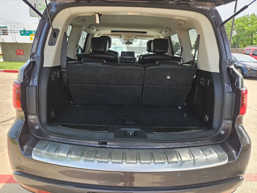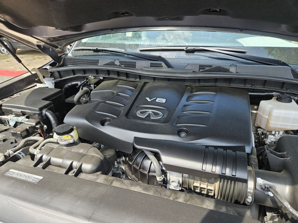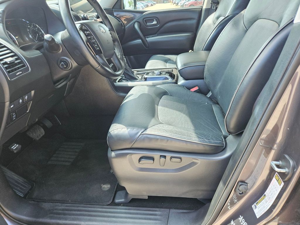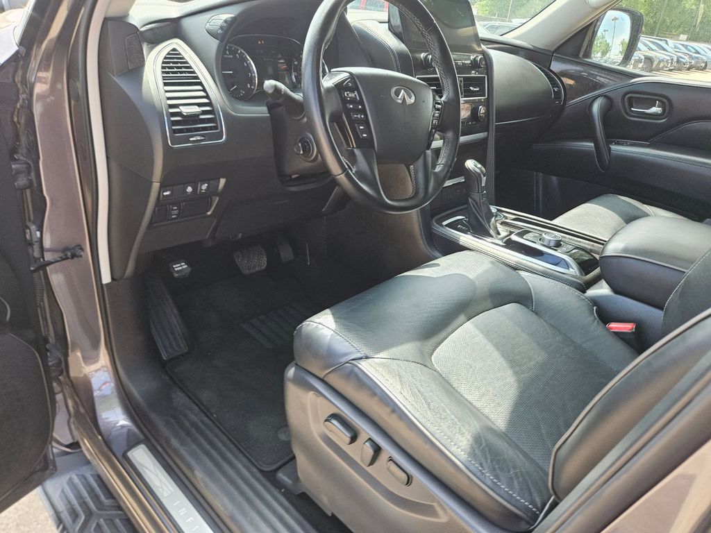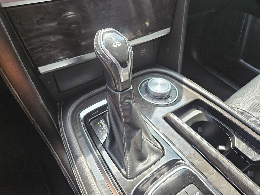 Check out all these great options Avis Certified Certified, 20" Aluminum Alloy Wheels, 3rd row seats: bench, Heated Front Bucket Seats, Heated front seats, Power Liftgate, Power moonroof, Reclining 3rd row seat, Remote keyless entry, 13 Speakers, 2.937 Axle Ratio, 4-Wheel Disc Brakes, ABS brakes, Air Conditioning, Alloy wheels, AM/FM radio: SiriusXM, Anti-whiplash front head restraints, Apple CarPlay/Android Auto, Auto High-beam Headlights, Auto tilt-away steering wheel, Auto-dimming door mirrors, Auto-dimming Rear-View mirror, Auto-leveling suspension, Automatic temperature control, Brake assist, Bumpers: body-color, Compass, Delay-off headlights, Driver door bin, Driver vanity mirror, Dual front impact airbags, Dual front side impact airbags, Electronic Stability Control, Emergency communication system: INFINITI InTouch, Four wheel independent suspension, Front anti-roll bar, Front Bucket Seats, Front Center Armrest, Front dual zone A/C, Front fog lights, Front reading lights, Fully automatic headlights, Garage door transmitter: HomeLink, Heated door mirrors, Heated steering wheel, Illuminated entry, Leather Shift Knob, Leather steering wheel, Leather-Appointed Seats, Literature Kit, Low tire pressure warning, Memory seat, Navigation system: INFINITI InTouch Navigation, Occupant sensing airbag, Outside temperature display, Overhead airbag, Overhead console, Panic alarm, Passenger door bin, Passenger vanity mirror, Power door mirrors, Power driver seat, Power passenger seat, Power steering, Power windows, Radio data system, Radio: Bose Premium Audio System w/13 Speakers, Rain sensing wipers, Rear air conditioning, Rear anti-roll bar, Rear reading lights, Rear seat center armrest, Rear window defroster, Rear window wiper, Security system, Speed control, Speed-sensing steering, Split folding rear seat, Spoiler, Steering wheel memory, Steering wheel mounted audio controls, Tachometer, Telescoping steering wheel, Tilt steering wheel, Traction control, Trip computer, Turn signal indicator mirrors, Variably intermittent wipers, and Voltmeter.