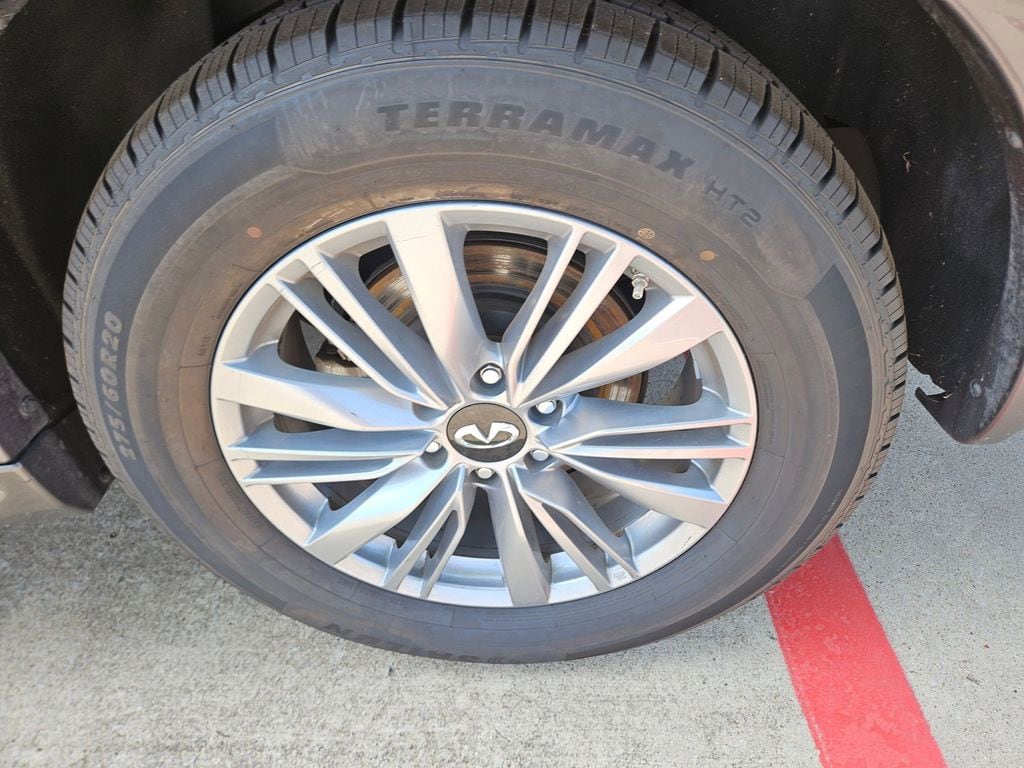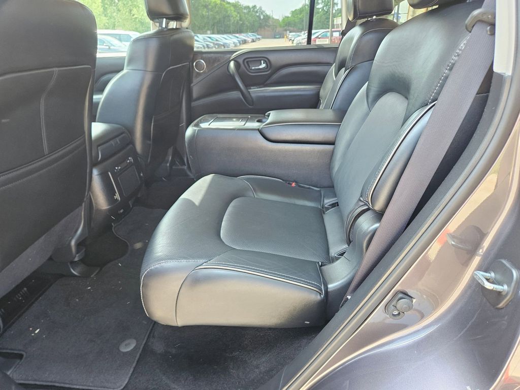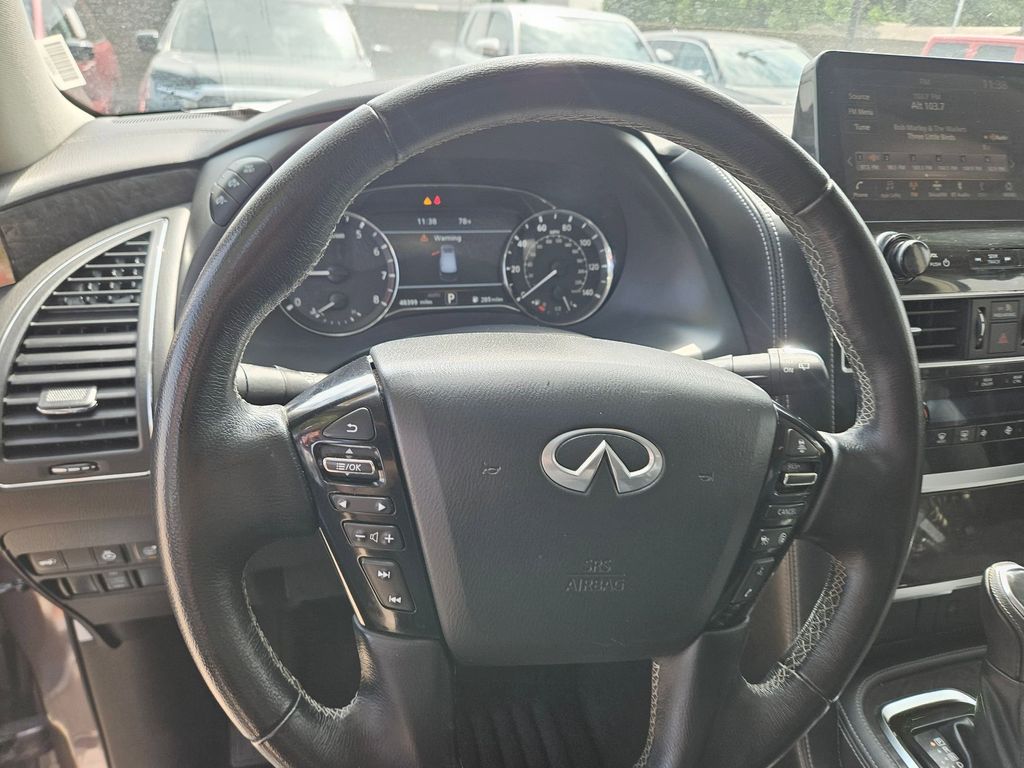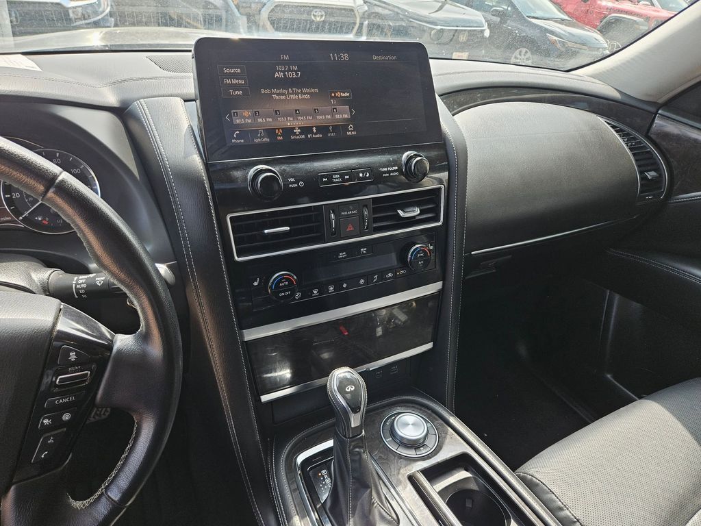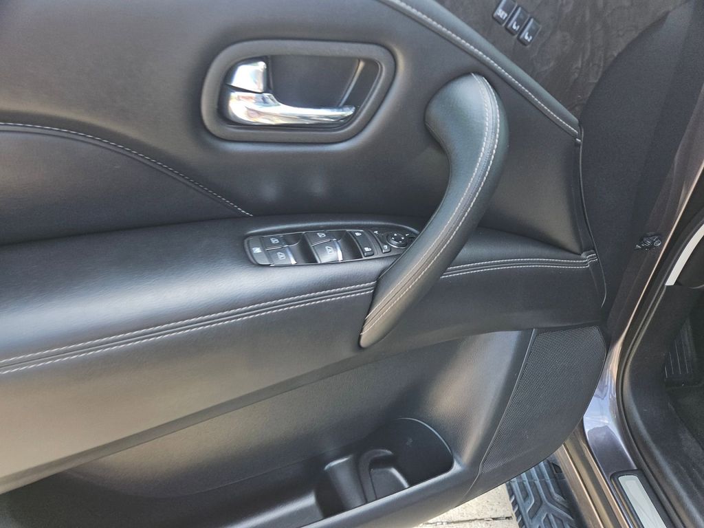 Check out all these great options Avis Certified Certified, 20" Aluminum Alloy Wheels, 3rd row seats: bench, Heated Front Bucket Seats, Heated front seats, Power Liftgate, Power moonroof, Reclining 3rd row seat, Remote keyless entry, 13 Speakers, 2.937 Axle Ratio, 4-Wheel Disc Brakes, ABS brakes, Air Conditioning, Alloy wheels, AM/FM radio: SiriusXM, Anti-whiplash front head restraints, Apple CarPlay/Android Auto, Auto High-beam Headlights, Auto tilt-away steering wheel, Auto-dimming door mirrors, Auto-dimming Rear-View mirror, Auto-leveling suspension, Automatic temperature control, Brake assist, Bumpers: body-color, Compass, Delay-off headlights, Driver door bin, Driver vanity mirror, Dual front impact airbags, Dual front side impact airbags, Electronic Stability Control, Emergency communication system: INFINITI InTouch, Four wheel independent suspension, Front anti-roll bar, Front Bucket Seats, Front Center Armrest, Front dual zone A/C, Front fog lights, Front reading lights, Fully automatic headlights, Garage door transmitter: HomeLink, Heated door mirrors, Heated steering wheel, Illuminated entry, Leather Shift Knob, Leather steering wheel, Leather-Appointed Seats, Literature Kit, Low tire pressure warning, Memory seat, Navigation system: INFINITI InTouch Navigation, Occupant sensing airbag, Outside temperature display, Overhead airbag, Overhead console, Panic alarm, Passenger door bin, Passenger vanity mirror, Power door mirrors, Power driver seat, Power passenger seat, Power steering, Power windows, Radio data system, Radio: Bose Premium Audio System w/13 Speakers, Rain sensing wipers, Rear air conditioning, Rear anti-roll bar, Rear reading lights, Rear seat center armrest, Rear window defroster, Rear window wiper, Security system, Speed control, Speed-sensing steering, Split folding rear seat, Spoiler, Steering wheel memory, Steering wheel mounted audio controls, Tachometer, Telescoping steering wheel, Tilt steering wheel, Traction control, Trip computer, Turn signal indicator mirrors, Variably intermittent wipers, and Voltmeter.