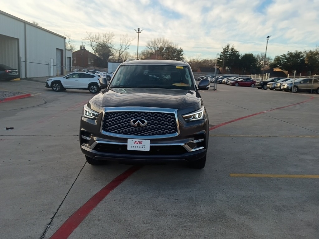 Check out all these great options Avis Certified Certified, 20" Aluminum Alloy Wheels, 3rd row seats: bench, Heated Front Bucket Seats, Heated front seats, Power Liftgate, Power moonroof, Reclining 3rd row seat, Split folding rear seat, Turn signal indicator mirrors, 13 Speakers, 2.937 Axle Ratio, 4-Wheel Disc Brakes, ABS brakes, Air Conditioning, Alloy wheels, AM/FM radio: SiriusXM, Anti-whiplash front head restraints, Apple CarPlay/Android Auto, Auto High-beam Headlights, Auto tilt-away steering wheel, Auto-dimming door mirrors, Auto-dimming Rear-View mirror, Auto-leveling suspension, Automatic temperature control, Brake assist, Bumpers: body-color, Compass, Delay-off headlights, Driver door bin, Driver vanity mirror, Dual front impact airbags, Dual front side impact airbags, Electronic Stability Control, Emergency communication system: INFINITI InTouch, Four wheel independent suspension, Front anti-roll bar, Front Bucket Seats, Front Center Armrest, Front dual zone A/C, Front fog lights, Front reading lights, Fully automatic headlights, Garage door transmitter: HomeLink, Heated door mirrors, Heated steering wheel, Illuminated entry, Leather Shift Knob, Leather steering wheel, Leather-Appointed Seats, Low tire pressure warning, Memory seat, Navigation system: INFINITI InTouch Navigation, Occupant sensing airbag, Outside temperature display, Overhead airbag, Overhead console, Panic alarm, Passenger door bin, Passenger vanity mirror, Power door mirrors, Power driver seat, Power passenger seat, Power steering, Power windows, Radio data system, Radio: Bose Premium Audio System w/13 Speakers, Rain sensing wipers, Rear air conditioning, Rear anti-roll bar, Rear reading lights, Rear seat center armrest, Rear window defroster, Rear window wiper, Remote keyless entry, Security system, Speed control, Speed-sensing steering, Spoiler, Steering wheel memory, Steering wheel mounted audio controls, Tachometer, Telescoping steering wheel, Tilt steering wheel, Traction control, Trip computer, Variably intermittent wipers, and Voltmeter.