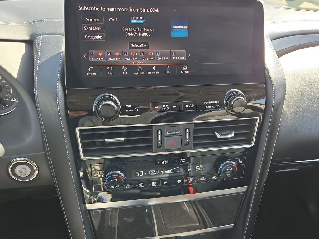 Check out all these great options Avis Car Sales Certified Certified, 20" Aluminum Alloy Wheels, 3rd row seats: bench, Heated Front Bucket Seats, Heated front seats, Power Liftgate, Power moonroof, Reclining 3rd row seat, Remote keyless entry, Split folding rear seat, 13 Speakers, 2.937 Axle Ratio, 4-Wheel Disc Brakes, ABS brakes, Air Conditioning, Alloy wheels, AM/FM radio: SiriusXM, Anti-whiplash front head restraints, Apple CarPlay/Android Auto, Auto High-beam Headlights, Auto tilt-away steering wheel, Auto-dimming door mirrors, Auto-dimming Rear-View mirror, Auto-leveling suspension, Automatic temperature control, Brake assist, Bumpers: body-color, Compass, Delay-off headlights, Driver door bin, Driver vanity mirror, Dual front impact airbags, Dual front side impact airbags, Electronic Stability Control, Emergency communication system: INFINITI InTouch, Four wheel independent suspension, Front anti-roll bar, Front Bucket Seats, Front Center Armrest, Front dual zone A/C, Front fog lights, Front reading lights, Fully automatic headlights, Garage door transmitter: HomeLink, Heated door mirrors, Heated steering wheel, Illuminated entry, Leather Shift Knob, Leather steering wheel, Leather-Appointed Seats, Low tire pressure warning, Memory seat, Navigation system: INFINITI InTouch Navigation, Occupant sensing airbag, Outside temperature display, Overhead airbag, Overhead console, Panic alarm, Passenger door bin, Passenger vanity mirror, Power door mirrors, Power driver seat, Power passenger seat, Power steering, Power windows, Radio data system, Radio: Bose Premium Audio System w/13 Speakers, Rain sensing wipers, Rear air conditioning, Rear anti-roll bar, Rear reading lights, Rear seat center armrest, Rear window defroster, Rear window wiper, Security system, Speed control, Speed-sensing steering, Spoiler, Steering wheel memory, Steering wheel mounted audio controls, Tachometer, Telescoping steering wheel, Tilt steering wheel, Traction control, Trip computer, Turn signal indicator mirrors, Variably intermittent wipers, and Voltmeter.