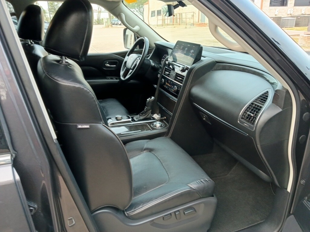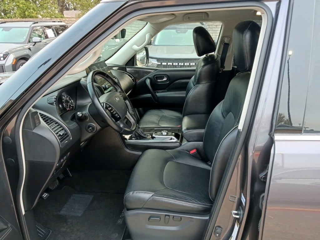 Check out all these great options Avis Certified Certified, Auto High-beam Headlights, Auto-dimming door mirrors, Bumpers: body-color, Delay-off headlights, Front fog lights, Fully automatic headlights, Heated door mirrors, Panic alarm, Power door mirrors, Security system, Speed control, Spoiler, Turn signal indicator mirrors, 13 Speakers, 2.937 Axle Ratio, 20" Aluminum Alloy Wheels, 3rd row seats: bench, 4-Wheel Disc Brakes, ABS brakes, Air Conditioning, Alloy wheels, AM/FM radio: SiriusXM, Anti-whiplash front head restraints, Apple CarPlay/Android Auto, Auto tilt-away steering wheel, Auto-dimming Rear-View mirror, Auto-leveling suspension, Automatic temperature control, Brake assist, Compass, Driver door bin, Driver vanity mirror, Dual front impact airbags, Dual front side impact airbags, Electronic Stability Control, Emergency communication system: INFINITI InTouch, Four wheel independent suspension, Front anti-roll bar, Front Bucket Seats, Front Center Armrest, Front dual zone A/C, Front reading lights, Garage door transmitter: HomeLink, Heated Front Bucket Seats, Heated front seats, Heated steering wheel, Illuminated entry, Leather Shift Knob, Leather steering wheel, Leather-Appointed Seats, Low tire pressure warning, Memory seat, Navigation system: INFINITI InTouch Navigation, Occupant sensing airbag, Outside temperature display, Overhead airbag, Overhead console, Passenger door bin, Passenger vanity mirror, Power driver seat, Power Liftgate, Power moonroof, Power passenger seat, Power steering, Power windows, Radio data system, Radio: Bose Premium Audio System w/13 Speakers, Rain sensing wipers, Rear air conditioning, Rear anti-roll bar, Rear reading lights, Rear seat center armrest, Rear window defroster, Rear window wiper, Reclining 3rd row seat, Remote keyless entry, Speed-sensing steering, Split folding rear seat, Steering wheel memory, Steering wheel mounted audio controls, Tachometer, Telescoping steering wheel, Tilt steering wheel, Traction control, Trip computer, Variably intermittent wipers, and Voltmeter.