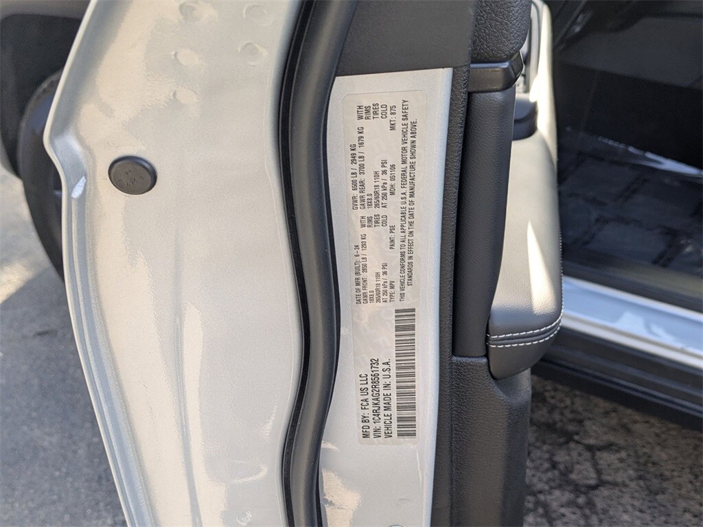 Check out all these great options Altitude Appearance Package, Quick Order Package 23B Altitude (115V Auxiliary Power Outlet, 3rd Row Charge-Only USB Ports, Black Headliner, Capri Leatherette/Suede Seats, Delete Laredo Badge, Gloss Black Exterior Accents, Heated Front Seats, Heated Steering Wheel, Power Liftgate, Rain Sensitive Windshield Wipers, Remote Start System, Selectable Tire Fill Alert, Wheels: 18" x 8.0" Fully Painted Aluminum 1, and Wireless Charging Pad), 3.45 Rear Axle Ratio, 3rd row seats: split-bench, 4-Wheel Disc Brakes, 6 Speakers, ABS brakes, Air Conditioning, Alloy wheels, Anti-whiplash front head restraints, Automatic temperature control, Brake assist, Bumpers: body-color, Cloth Seats, Compass, Delay-off headlights, Driver door bin, Driver vanity mirror, Dual front impact airbags, Dual front side impact airbags, Electronic Stability Control, Emergency communication system, Four wheel independent suspension, Front anti-roll bar, Front Bucket Seats, Front Center Armrest w/Storage, Front dual zone A/C, Front reading lights, Fully automatic headlights, Heated door mirrors, Illuminated entry, Knee airbag, Low tire pressure warning, Manual Fold Seatbacks, Normal Duty Suspension, Occupant sensing airbag, Outside temperature display, Overhead airbag, Overhead console, Panic alarm, ParkView Rear Back-Up Camera, Passenger door bin, Passenger vanity mirror, Power door mirrors, Power driver seat, Power steering, Power windows, Radio data system, Radio: Uconnect 5 w/8.4" Display, Rear air conditioning, Rear anti-roll bar, Rear reading lights, Rear window defroster, Rear window wiper, Reclining 3rd row seat, Remote keyless entry, Security system, Speed control, Speed-Sensitive Wipers, Split folding rear seat, Spoiler, Steering wheel mounted audio controls, Tachometer, Telescoping steering wheel, Tilt steering wheel, Traction control, Trip computer, Variably intermittent wipers, Voltmeter, and Wheels: 18" x 8.0" Fully Painted Aluminum.