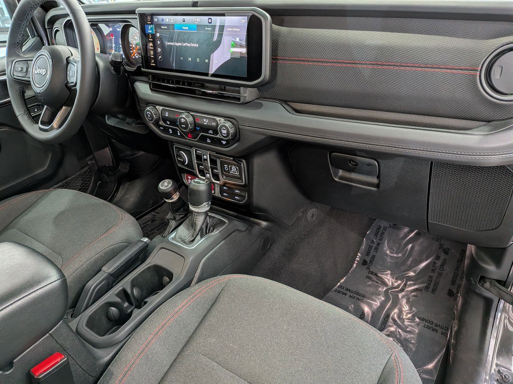The interior of the 2025 Wrangler Rubicon is equally impressive, featuring a host of premium amenities, including a 12.3" Uconnect 5 display, Apple CarPlay, Google Android Auto, and a powerful 8-speaker audio system. The cloth low-back bucket seats provide exceptional comfort, while the class II receiver hitch allows you to tow your gear with ease.