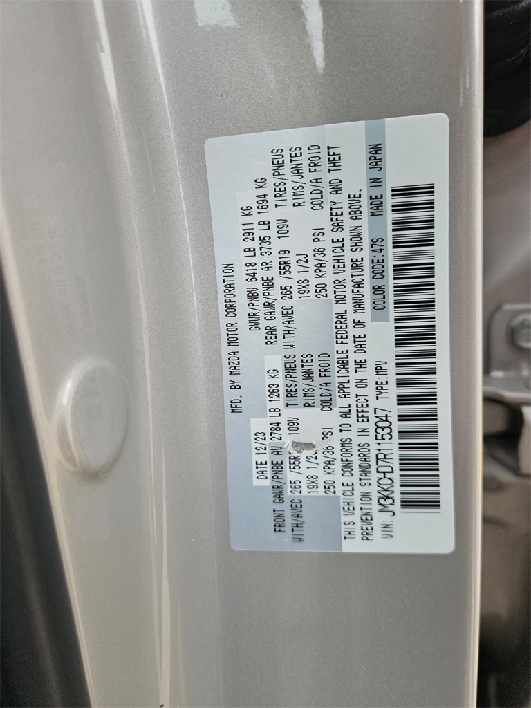 Check out all these great options Avis Certified Certified, AppLink/Apple CarPlay and Android Auto, Compass, Driver door bin, Driver vanity mirror, E911 Automatic Emergency Notification, Front reading lights, Illuminated entry, Leather Shift Knob, Leather steering wheel, 3rd row seats: bench, 4-Wheel Disc Brakes, 8 Speakers, ABS brakes, Air Conditioning, Alloy wheels, AM/FM radio, Auto High-beam Headlights, Automatic temperature control, Brake assist, Bumpers: body-color, Delay-off headlights, Dual front impact airbags, Dual front side impact airbags, Electronic Stability Control, Emergency communication system: MAZDA CONNECT, Exterior Parking Camera Rear, Four wheel independent suspension, Front anti-roll bar, Front Bucket Seats, Front Center Armrest w/Storage, Front dual zone A/C, Fully automatic headlights, Heads-Up Display, Heated door mirrors, Heated Front Bucket Seats, Heated front seats, Infotainment System Voice Command, Knee airbag, Leather Seat Trim, Low tire pressure warning, Mazda Connected Services, Occupant sensing airbag, Outside temperature display, Overhead airbag, Overhead console, Pandora Internet Radio Integration, Panic alarm, Passenger door bin, Passenger vanity mirror, Power door mirrors, Power driver seat, Power Liftgate, Power moonroof, Power passenger seat, Power steering, Power windows, Radio Broadcast Data System Program Information, Radio data system, Radio: AM/FM Sound System, Rain sensing wipers, Rear air conditioning, Rear anti-roll bar, Rear reading lights, Rear seat center armrest, Rear window defroster, Rear window wiper, Remote keyless entry, SMS Text Msg Audio Delivery & Reply, Speed control, Speed-sensing steering, Split folding rear seat, Spoiler, Steering wheel mounted audio controls, Tachometer, Telescoping steering wheel, Tilt steering wheel, Traction control, Trip computer, Turn signal indicator mirrors, Variably intermittent wipers, and Wheels: 19" x 8.5J Aluminum Alloy.