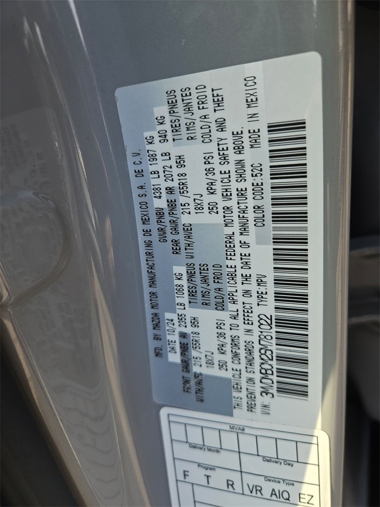 Check out all these great options Avis Certified Certified, Exterior Parking Camera Rear, Heated Front Bucket Seats, Leatherette Seat Trim, Power moonroof, Rain sensing wipers, Wheels: 18" x 7J Aluminum Alloy, 4-Wheel Disc Brakes, 6 Speakers, ABS brakes, Aero Gray Paint Charge, Air Conditioning, Alloy wheels, AM/FM radio, AppLink/Apple CarPlay and Android Auto, Auto High-beam Headlights, Automatic temperature control, Brake assist, Bumpers: body-color, Compass, Delay-off headlights, Driver door bin, Driver vanity mirror, Dual front impact airbags, Dual front side impact airbags, Electronic Stability Control, Emergency communication system: Mazda Connected Services (3-year trial subscription included), Front anti-roll bar, Front Bucket Seats, Front Center Armrest, Front dual zone A/C, Front reading lights, Front wheel independent suspension, Fully automatic headlights, Heated door mirrors, Heated front seats, Illuminated entry, Knee airbag, Leather Shift Knob, Leather steering wheel, Low tire pressure warning, MAZDA CONNECT Infotainment System, Memory seat, Occupant sensing airbag, Outside temperature display, Overhead airbag, Overhead console, Panic alarm, Passenger door bin, Passenger vanity mirror, Power door mirrors, Power driver seat, Power steering, Power windows, Radio data system, Radio: AM/FM Audio System, Rear seat center armrest, Rear side impact airbag, Rear window defroster, Rear window wiper, Remote keyless entry, Speed control, Speed-sensing steering, Split folding rear seat, Spoiler, Steering wheel mounted audio controls, Tachometer, Telescoping steering wheel, Tilt steering wheel, Traction control, Trip computer, Turn signal indicator mirrors, Variably intermittent wipers, and Wheels: 18" Matte Black Alloy (DIO)