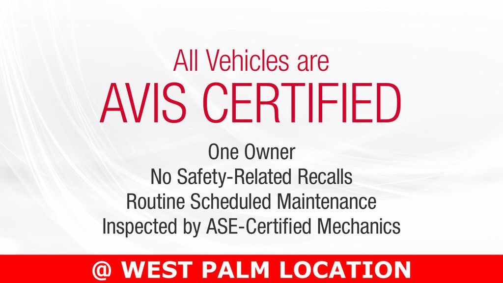Certification Program Details: Avis Certified vehicles all have a 170 point inspection performed by ASE mechanics. They also are recall free, one owner and have powertrain warranty covering the vehicles for 12 months/ 12,000 miles at no additional charge. Additional balance of original factory limited warranty may also apply.