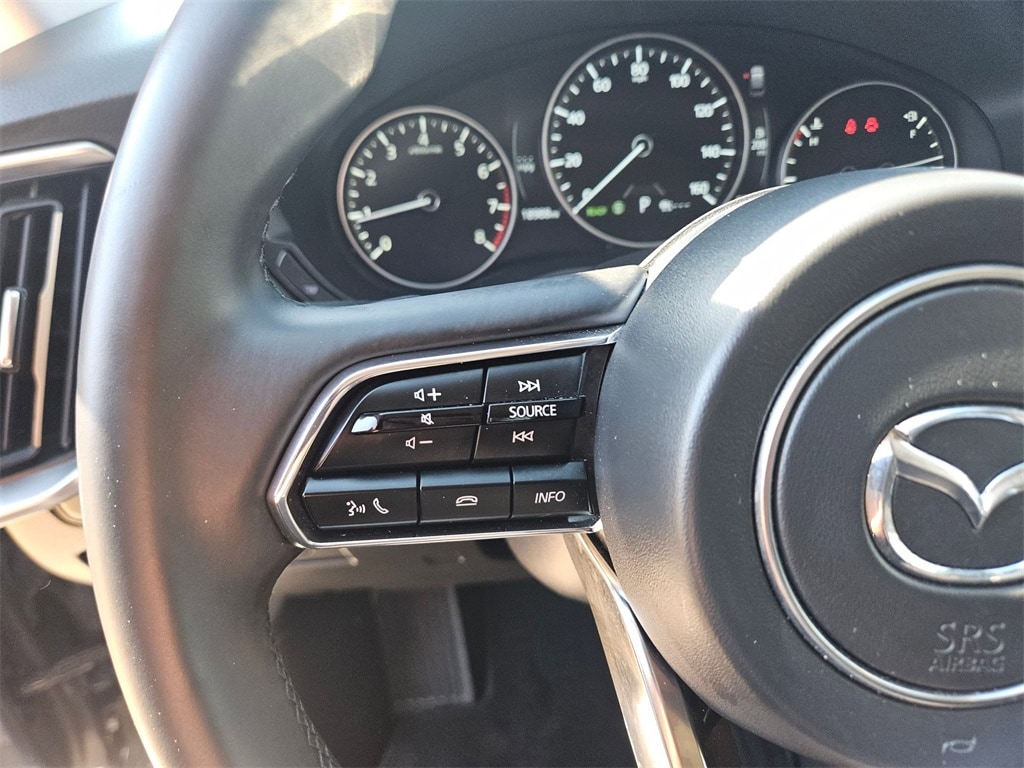 Check out all these great options Avis Certified Certified, AppLink/Apple CarPlay and Android Auto, Compass, Digital Rear View Mirror w/HomeLink (DIO), Driver door bin, Driver vanity mirror, E911 Automatic Emergency Notification, Front reading lights, Illuminated entry, Leather Shift Knob, Leather steering wheel, Mazda Connected Services, Outside temperature display, Overhead console, 4-Wheel Disc Brakes, 8 Speakers, ABS brakes, Air Conditioning, Alloy wheels, AM/FM radio, Auto High-beam Headlights, Automatic temperature control, Brake assist, Bumpers: body-color, Delay-off headlights, Dual front impact airbags, Dual front side impact airbags, Electronic Stability Control, Emergency communication system: MAZDA CONNECT, Exterior Parking Camera Rear, Four wheel independent suspension, Front anti-roll bar, Front Bucket Seats, Front Center Armrest w/Storage, Front dual zone A/C, Fully automatic headlights, Heated door mirrors, Heated Front Bucket Seats, Heated front seats, Infotainment System Voice Command, Knee airbag, Leather Seat Trim, Low tire pressure warning, Occupant sensing airbag, Overhead airbag, Pandora Internet Radio Integration, Panic alarm, Passenger door bin, Passenger vanity mirror, Power door mirrors, Power driver seat, Power Liftgate, Power moonroof, Power passenger seat, Power steering, Power windows, Radio Broadcast Data System Program Information, Radio data system, Radio: AM/FM Sound System, Rain sensing wipers, Rear air conditioning, Rear anti-roll bar, Rear reading lights, Rear seat center armrest, Rear window defroster, Rear window wiper, Remote keyless entry, SMS Text Msg Audio Delivery & Reply, Speed control, Speed-sensing steering, Split folding rear seat, Spoiler, Steering wheel mounted audio controls, Tachometer, Telescoping steering wheel, Tilt steering wheel, Traction control, Trip computer, Turn signal indicator mirrors, Variably intermittent wipers, and Wheels: 19" x 8.5J Aluminum Alloy.