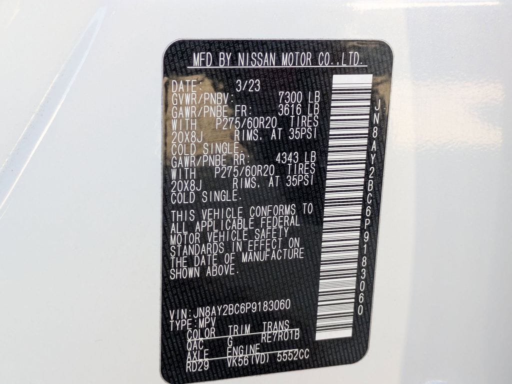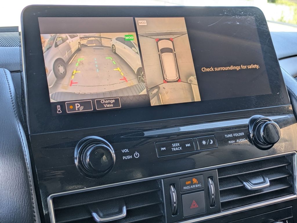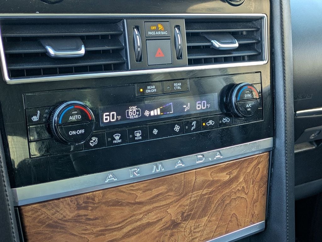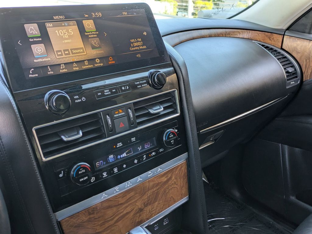 Check out all these great options Avis Car Sales Certified Certified, 3rd row seats: split-bench, Exterior Parking Camera Rear, Power Liftgate, Power moonroof, Reclining 3rd row seat, Remote keyless entry, Split folding rear seat, Wheels: 20" x 8J Painted Alloy, 13 Speakers, 2.94 Axle Ratio, 3rd Row Carpeted Floor Mats - Bench Seat, 4-Wheel Disc Brakes, ABS brakes, Air Conditioning, Alloy wheels, AM/FM radio: SiriusXM, Anti-whiplash front head restraints, Auto High-beam Headlights, Auto tilt-away steering wheel, Auto-dimming door mirrors, Auto-dimming Rear-View mirror, Auto-leveling suspension, Automatic temperature control, Bose 13-Speaker Premium Audio System, Brake assist, Bumpers: body-color, Delay-off headlights, Driver door bin, Driver vanity mirror, Dual front impact airbags, Dual front side impact airbags, Electronic Stability Control, Emergency communication system: NissanConnect Services, Four wheel independent suspension, Front anti-roll bar, Front Bucket Seats, Front Center Armrest, Front dual zone A/C, Front fog lights, Front reading lights, Fully automatic headlights, Garage door transmitter: HomeLink, Heated door mirrors, Heated Front Bucket Seats, Heated front seats, Heated steering wheel, Illuminated entry, Knee airbag, Leather Shift Knob, Leather-Appointed Seat Trim, Low tire pressure warning, Memory seat, Navigation System, NissanConnect featuring Apple CarPlay and Android Auto, Occupant sensing airbag, Outside temperature display, Overhead airbag, Overhead console, Panic alarm, Passenger door bin, Passenger vanity mirror, Power door mirrors, Power driver seat, Power passenger seat, Power steering, Power windows, Premium audio system: Bose, Radio: NissanConnect w/SiriusXM, Rear air conditioning, Rear anti-roll bar, Rear reading lights, Rear seat center armrest, Rear window defroster, Rear window wiper, Security system, Speed control, Speed-sensing steering, Speed-Sensitive Wipers, Spoiler, Steering wheel memory, Steering wheel mounted audio controls, Tachometer, Telescoping steering wheel, Tilt steering wheel, Traction control, Trip computer, Turn signal indicator mirrors, Variably intermittent wipers, and Voltmeter.