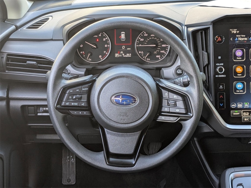 Check out all these great options Avis Certified Certified, Exterior Parking Camera Rear, Wheels: 17" x 7.0J Dark Gray Aluminum Alloy, 3.90 Axle Ratio, 4-Wheel Disc Brakes, 6 Speakers, ABS brakes, Air Conditioning, Alloy wheels, AM/FM radio: SiriusXM, Anti-whiplash front head restraints, Auto High-beam Headlights, Automatic temperature control, Brake assist, Bumpers: body-color, Driver door bin, Driver vanity mirror, Dual front impact airbags, Dual front side impact airbags, Electronic Stability Control, Emergency communication system: STARLINK Safety and Security (Subscription Required), Four wheel independent suspension, Front anti-roll bar, Front Bucket Seats, Front Center Armrest, Front dual zone A/C, Front fog lights, Front reading lights, Fully automatic headlights, Illuminated entry, Knee airbag, Low tire pressure warning, Occupant sensing airbag, Outside temperature display, Overhead airbag, Overhead console, Panic alarm, Passenger door bin, Passenger vanity mirror, Power door mirrors, Power steering, Power windows, Premium Cloth Upholstery, Radio data system, Radio: Subaru STARLINK 11.6" Multimedia Plus Sys, Rear anti-roll bar, Rear seat center armrest, Rear window defroster, Rear window wiper, Remote keyless entry, Security system, Speed control, Speed-sensing steering, Split folding rear seat, Spoiler, STARLINK/Apple CarPlay/Android Auto, Steering wheel mounted audio controls, Tachometer, Telescoping steering wheel, Tilt steering wheel, Traction control, Trip computer, Turn signal indicator mirrors, and Variably intermittent wipers.