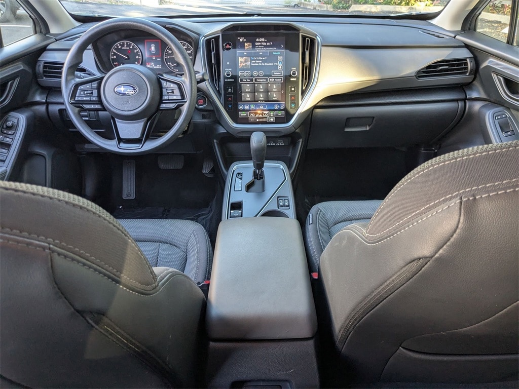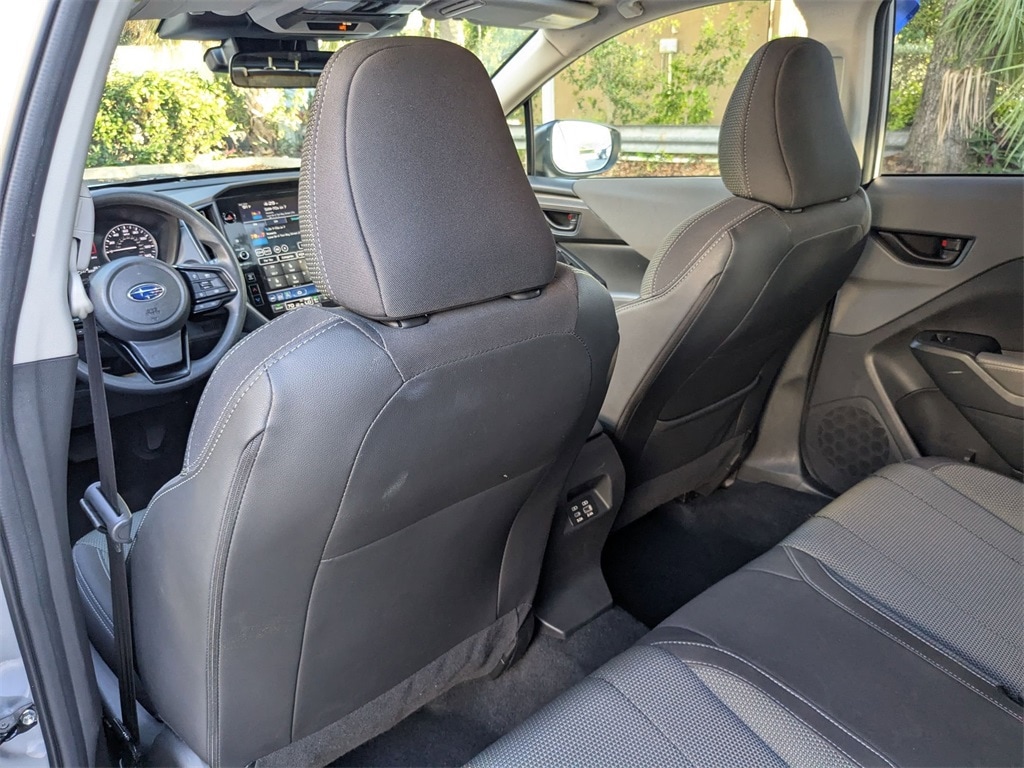 Check out all these great options All-Weather Package (Heated Exterior Mirrors, Heated Front Seats, and Heated Wipers), BSD/RCTA & Moonrf & All Weather Pkg & Pwr Dr. Seat (10-Way Power Driver's Seat, Blind Spot Detection w/Rear Cross-Traffic Alert, and Power Moonroof), Avis Certified Certified, Exterior Parking Camera Rear, Remote keyless entry, Wheels: 17" x 7.0J Dark Gray Aluminum Alloy, 3.90 Axle Ratio, 4-Wheel Disc Brakes, 6 Speakers, ABS brakes, Air Conditioning, Alloy wheels, AM/FM radio: SiriusXM, Anti-whiplash front head restraints, Auto High-beam Headlights, Automatic temperature control, Brake assist, Bumpers: body-color, Driver door bin, Driver vanity mirror, Dual front impact airbags, Dual front side impact airbags, Electronic Stability Control, Emergency communication system: STARLINK Safety and Security (Subscription Required), Four wheel independent suspension, Front anti-roll bar, Front Bucket Seats, Front Center Armrest, Front dual zone A/C, Front fog lights, Front reading lights, Fully automatic headlights, Illuminated entry, Knee airbag, Low tire pressure warning, Occupant sensing airbag, Outside temperature display, Overhead airbag, Overhead console, Panic alarm, Passenger door bin, Passenger vanity mirror, Power door mirrors, Power steering, Power windows, Premium Cloth Upholstery, Radio data system, Radio: Subaru STARLINK 11.6" Multimedia Plus Sys, Rear anti-roll bar, Rear seat center armrest, Rear window defroster, Rear window wiper, Security system, Speed control, Speed-sensing steering, Split folding rear seat, Spoiler, STARLINK/Apple CarPlay/Android Auto, Steering wheel mounted audio controls, Tachometer, Telescoping steering wheel, Tilt steering wheel, Traction control, Trip computer, Turn signal indicator mirrors, and Variably intermittent wipers.