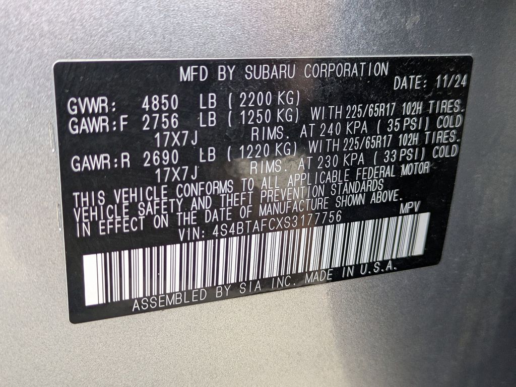 - Tracker system: MySubaru Security (6-month free trial included)