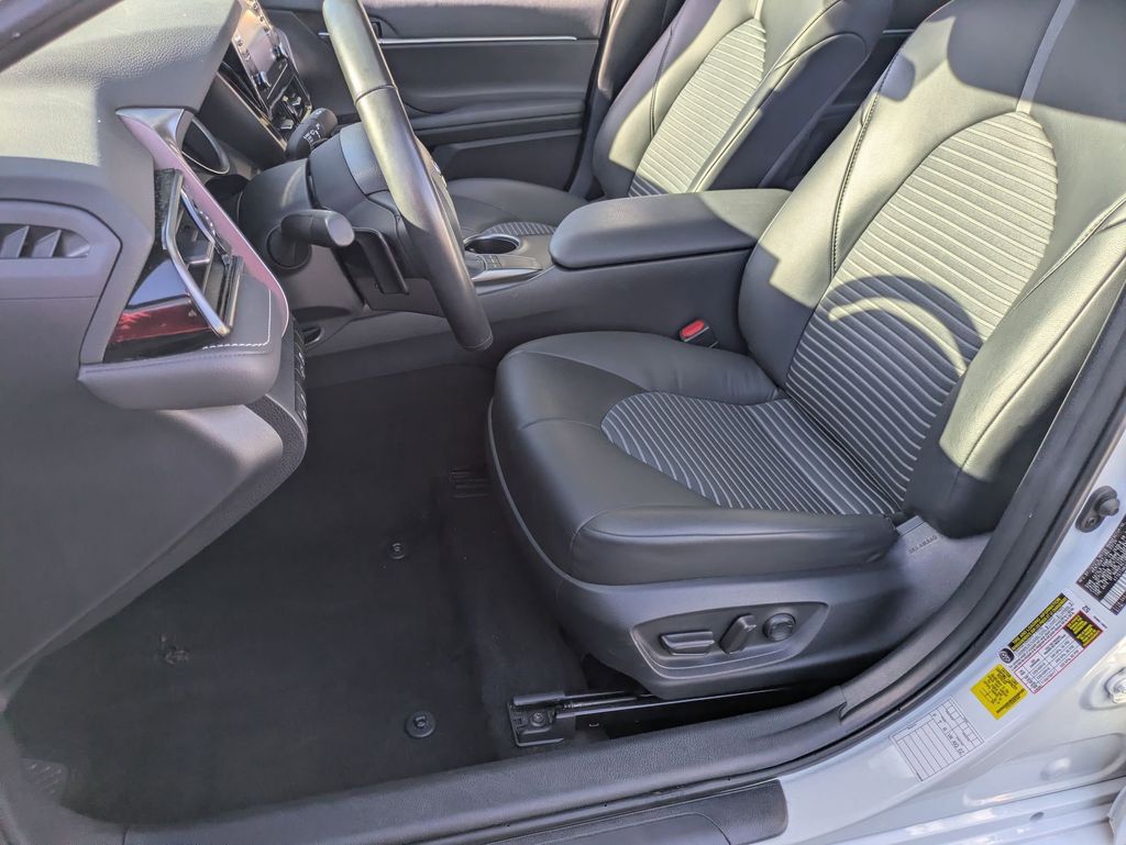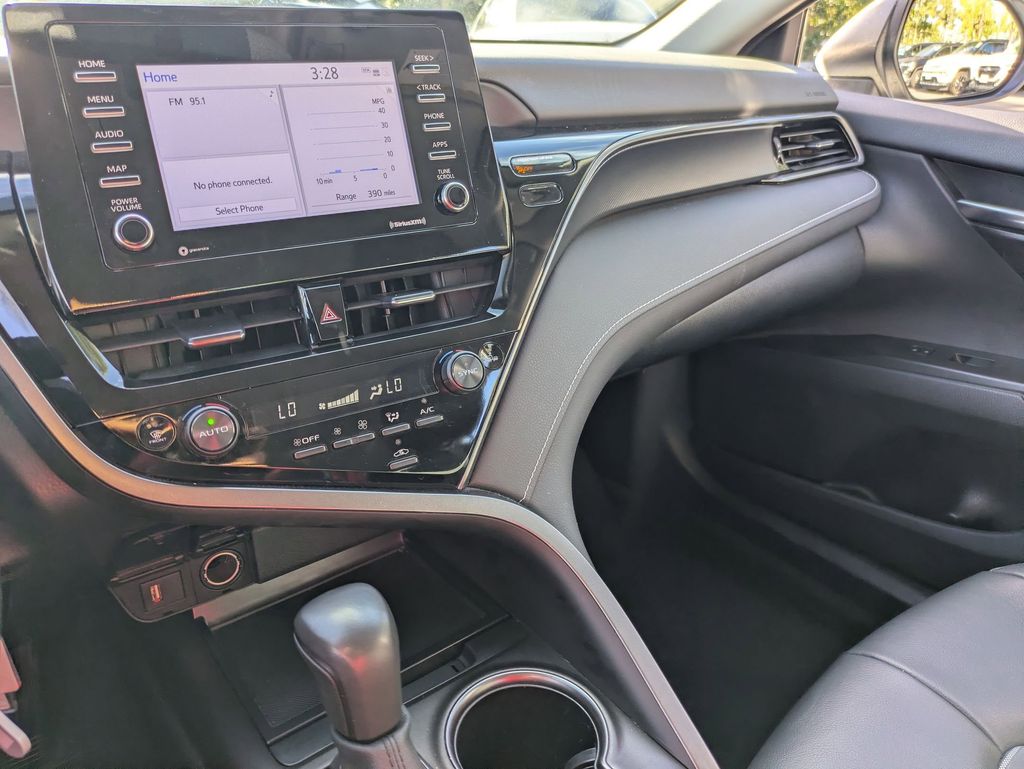 The cabin of the Camry SE is a sanctuary of comfort and convenience, with features like dual-zone automatic climate control, power driver's seat, and a premium audio system with SiriusXM. The sleek and modern interior design, complemented by the sport-inspired SofTex seat trim, creates an environment that is both stylish and inviting.