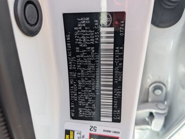 Check out all these great options 2.5L 4-Cylinder 16V DOHC, 4-Wheel Disc Brakes, 6 Speakers, ABS brakes, Air Conditioning, Alloy wheels, AM/FM radio: SiriusXM, Apple CarPlay/Android Auto, Auto High-beam Headlights, Automatic temperature control, Brake assist, Bumpers: body-color, Delay-off headlights, Driver door bin, Driver vanity mirror, Dual front impact airbags, Dual front side impact airbags, Electronic Stability Control, Emergency communication system: Safety Connect (up to 10-year trial subscription), Exterior Parking Camera Rear, Four wheel independent suspension, Front anti-roll bar, Front Bucket Seats, Front Center Armrest, Front dual zone A/C, Front reading lights, Fully automatic headlights, Heated door mirrors, Illuminated entry, Knee airbag, Leather Shift Knob, Leather steering wheel, Low tire pressure warning, Occupant sensing airbag, Outside temperature display, Overhead airbag, Overhead console, Panic alarm, Passenger door bin, Passenger vanity mirror, Power door mirrors, Power driver seat, Power steering, Power windows, Radio data system, Radio: Toyota Audio Multimedia w/8" Touchscreen, Rear anti-roll bar, Rear reading lights, Rear seat center armrest, Rear side impact airbag, Rear window defroster, Remote keyless entry, Security system, SofTex & Fabric Seat Trim, Speed control, Speed-sensing steering, Split folding rear seat, Spoiler, Steering wheel mounted audio controls, Telescoping steering wheel, Tilt steering wheel, Traction control, Trip computer, Turn signal indicator mirrors, Variably intermittent wipers, and Wheels: 18" Black-Finished Alloy.