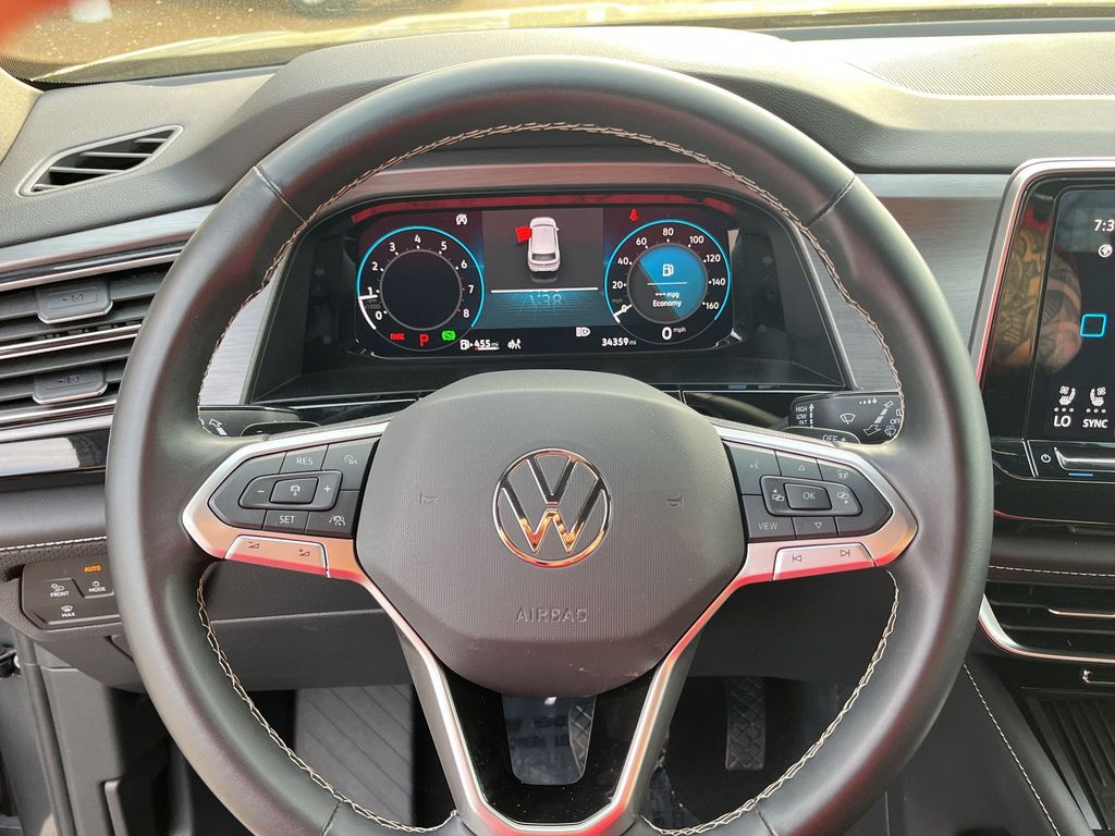 The exterior of the Atlas Cross Sport exudes a bold and sophisticated presence, with its sleek lines and striking 20-inch 5-spoke alloy wheels. Step inside, and you'll be greeted by a spacious and well-appointed cabin, featuring premium Leatherette seating surfaces, a heated steering wheel, and a host of advanced technology features that will elevate your driving experience.