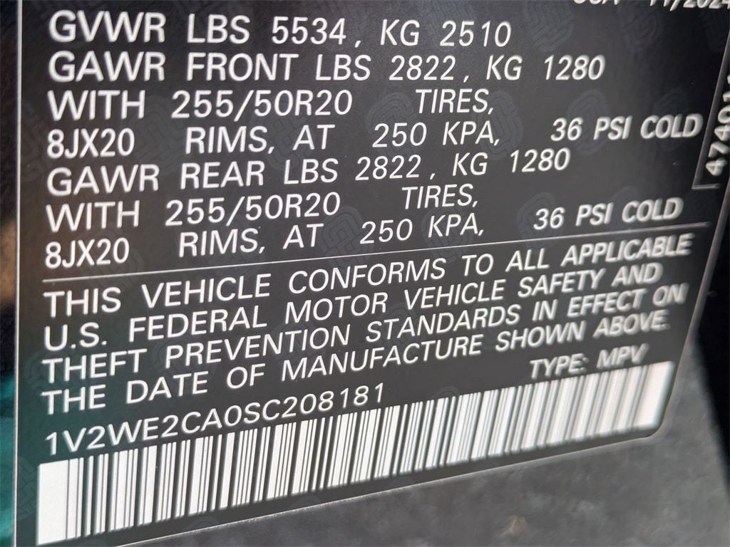 - Front tires: 255/50HR20.0