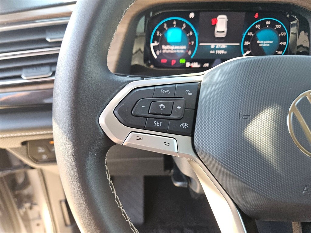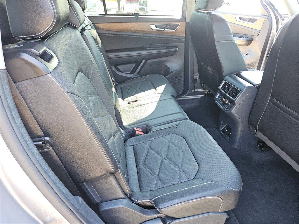 Check out all these great options Avis Certified Certified, Exterior Parking Camera Rear, Heated & Actively Ventilated Front Bucket Seats, Heated steering wheel, Perforated V-Tex Leatherette Seating Surfaces, Power Liftgate, Rain sensing wipers, Wheels: 20" 2-Tone Machined Alloy, 3rd row seats: split-bench, 4-Wheel Disc Brakes, 6 Speakers, ABS brakes, Air Conditioning, Alloy wheels, AM/FM radio: SiriusXM with 360L, Auto High-beam Headlights, Auto-dimming Rear-View mirror, Automatic temperature control, Brake assist, Bumpers: body-color, Compass, Delay-off headlights, Driver door bin, Driver vanity mirror, Dual front impact airbags, Dual front side impact airbags, Electronic Stability Control, Emergency communication system: VW Car-Net Safe & Secure 5-year, Four wheel independent suspension, Four-wheel Independent Suspension, Front anti-roll bar, Front Bucket Seats, Front Center Armrest, Front dual zone A/C, Front fog lights, Front reading lights, Fully automatic headlights, Heated door mirrors, Heated front seats, Illuminated entry, Low tire pressure warning, Occupant sensing airbag, Outside temperature display, Overhead airbag, Overhead console, Panic alarm, Passenger door bin, Passenger vanity mirror, Power door mirrors, Power driver seat, Power steering, Power windows, Radio data system, Radio: MIB3 Composition Media, Rear air conditioning, Rear anti-roll bar, Rear reading lights, Rear seat center armrest, Rear window defroster, Rear window wiper, Remote keyless entry, Security system, Speed control, Speed-sensing steering, Split folding rear seat, Spoiler, Steering wheel mounted audio controls, Tachometer, Telescoping steering wheel, Tilt steering wheel, Traction control, Trip computer, Turn signal indicator mirrors, Variably intermittent wipers, and Ventilated front seats.