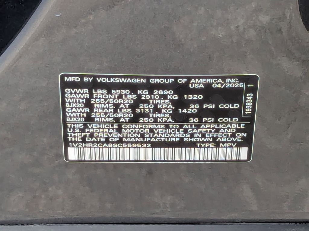 Check out all these great options Avis Car Sales Certified Certified, 20" 2-tone machined alloy wheels, 3rd row seats: split-bench, Brake assist, Heated front seats, Power Liftgate, Remote keyless entry, Split folding rear seat, 4-Wheel Disc Brakes, 6 Speakers, ABS brakes, Air Conditioning, Alloy wheels, AM/FM radio: SiriusXM with 360L, Auto High-beam Headlights, Auto-dimming Rear-View mirror, Automatic temperature control, Bumpers: body-color, Compass, Delay-off headlights, Driver door bin, Driver vanity mirror, Dual front impact airbags, Dual front side impact airbags, Electronic Stability Control, Emergency communication system: VW Car-Net Safe & Secure 5-year, Exterior Parking Camera Rear, Four wheel independent suspension, four-wheel independent suspension, Front anti-roll bar, Front Bucket Seats, Front Center Armrest, Front dual zone A/C, Front fog lights, Front reading lights, Fully automatic headlights, heated and Actively ventilated front bucket seats, Heated door mirrors, Heated steering wheel, Illuminated entry, Low tire pressure warning, MIB3 composition media radio, Occupant sensing airbag, Outside temperature display, Overhead airbag, Overhead console, Panic alarm, Passenger door bin, Passenger vanity mirror, perforated V-Tex leatherette seating surfaces, Power door mirrors, Power driver seat, Power steering, Power windows, Radio data system, Rain sensing wipers, Rear air conditioning, Rear anti-roll bar, Rear reading lights, Rear seat center armrest, Rear window defroster, Rear window wiper, Security system, Speed control, Speed-sensing steering, Spoiler, Steering wheel mounted audio controls, Tachometer, Telescoping steering wheel, Tilt steering wheel, Traction control, Trip computer, Turn signal indicator mirrors, Variably intermittent wipers, and Ventilated front seats.